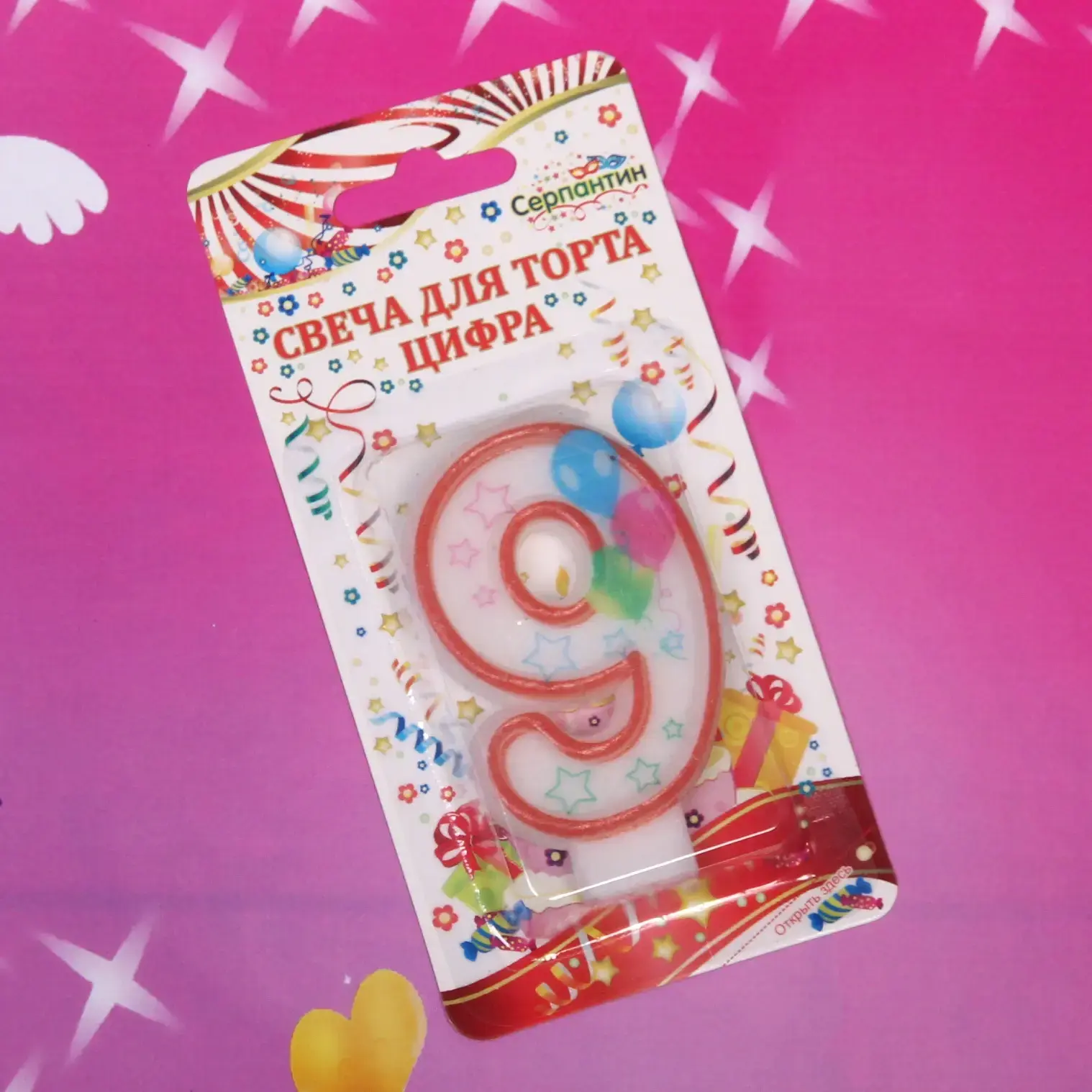 Яркое оформление для особого дня — свеча для торта цифра 9