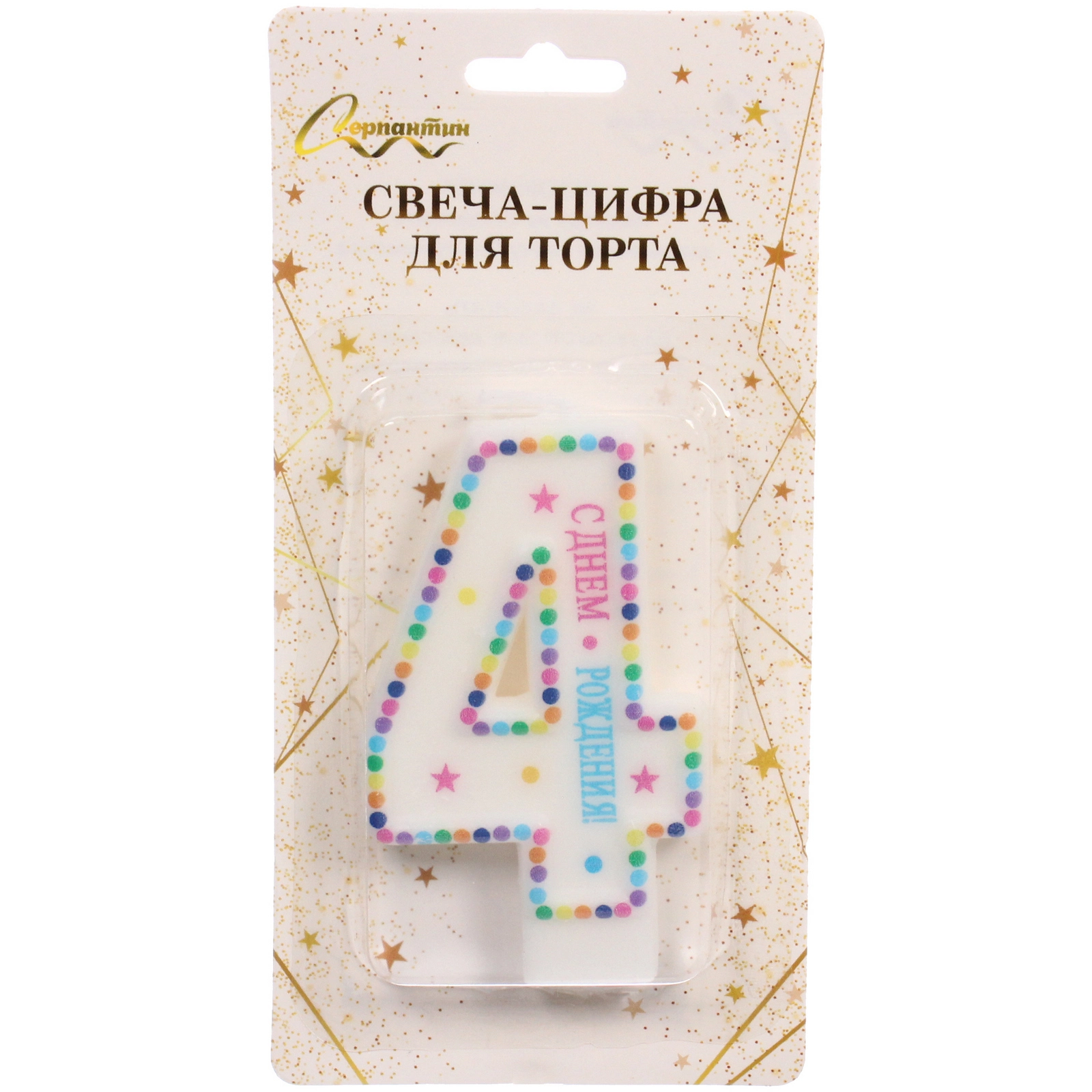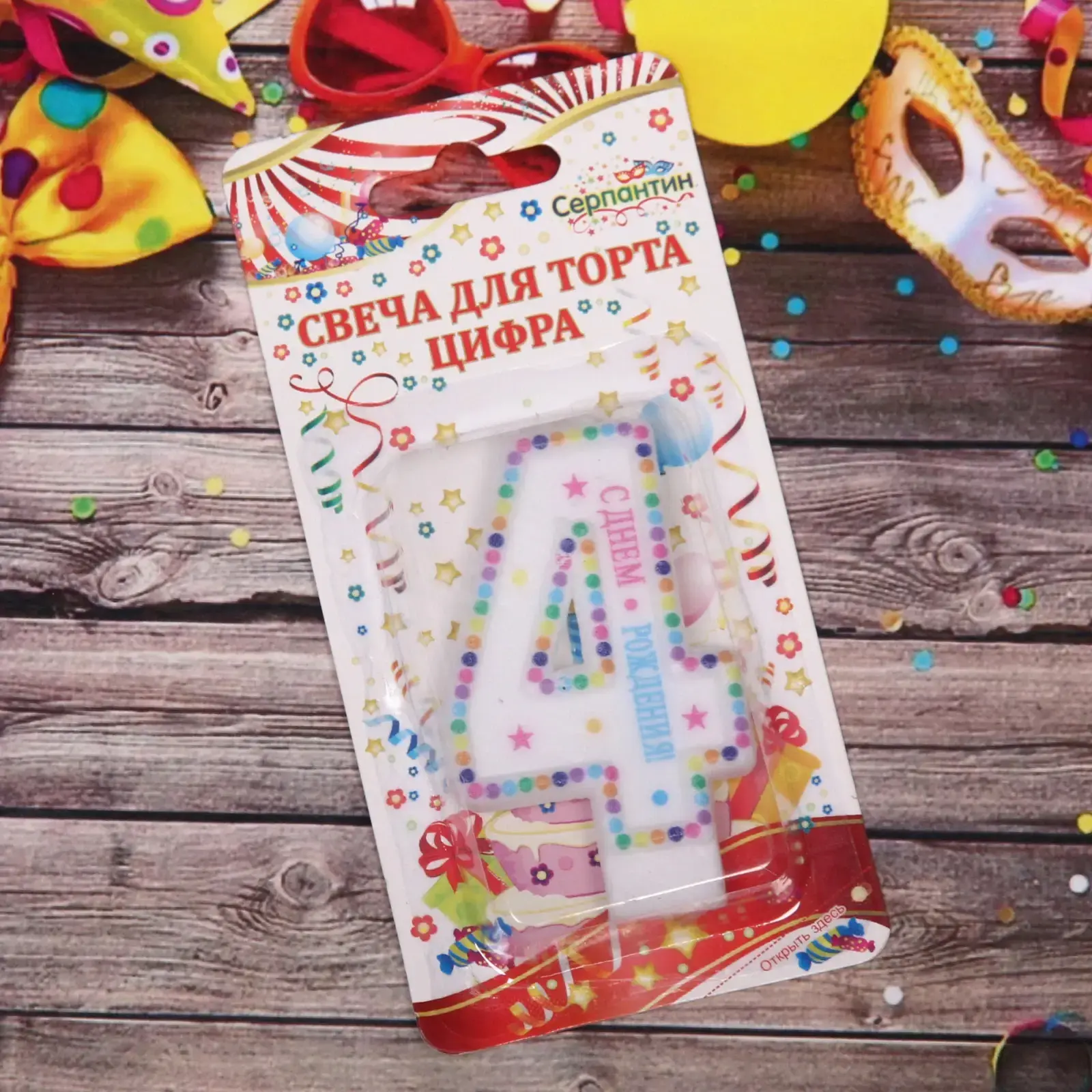 Свеча для торта в виде цифры 4 — это мгновенное ощущение настоящего праздника сразу, как только вы открываете упаковку! Белый цвет с разноцветными точками и праздничная надпись «С Днём Рождения» создают атмосферу радости, которую заметят все гости. Такой аксессуар помогает уникально оформить торт, обозначить возраст именинника и подарить личные эмоции даже самым маленьким виновникам торжества.
