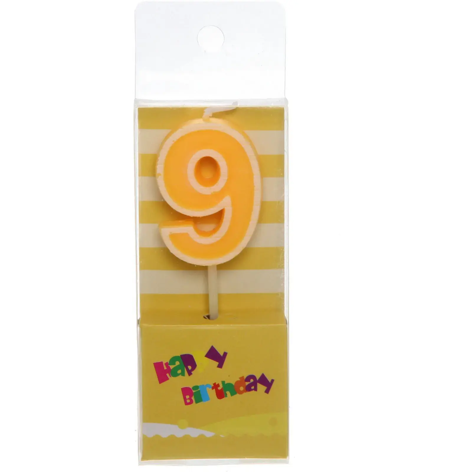 Добавьте незабываемый штрих к празднику с помощью свечи для торта в виде цифры 9. Ее насыщенный желтый цвет привлечет внимание и создаст атмосферу радости, а удобная форма и деревянная палочка обеспечивают простую установку даже на самом воздушном торте.