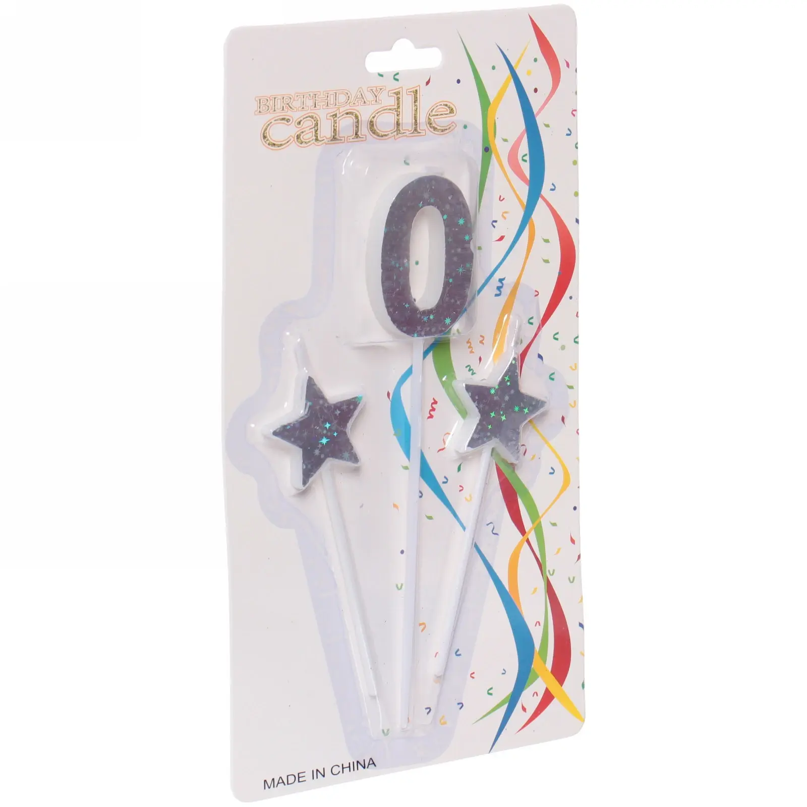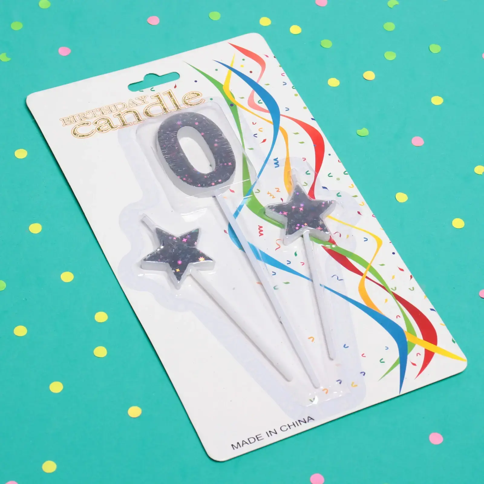 Почему стоит выбрать именно наши свечи? Во-первых, они выполнены из качественного парафина, что обеспечивает их долговечность и безопасность. Во-вторых, блестящий дизайн добавляет праздничного настроения и делает ваш торт центром внимания. Набор включает одну свечу в форме цифры '0' и две звезды, что позволяет создать гармоничное оформление.