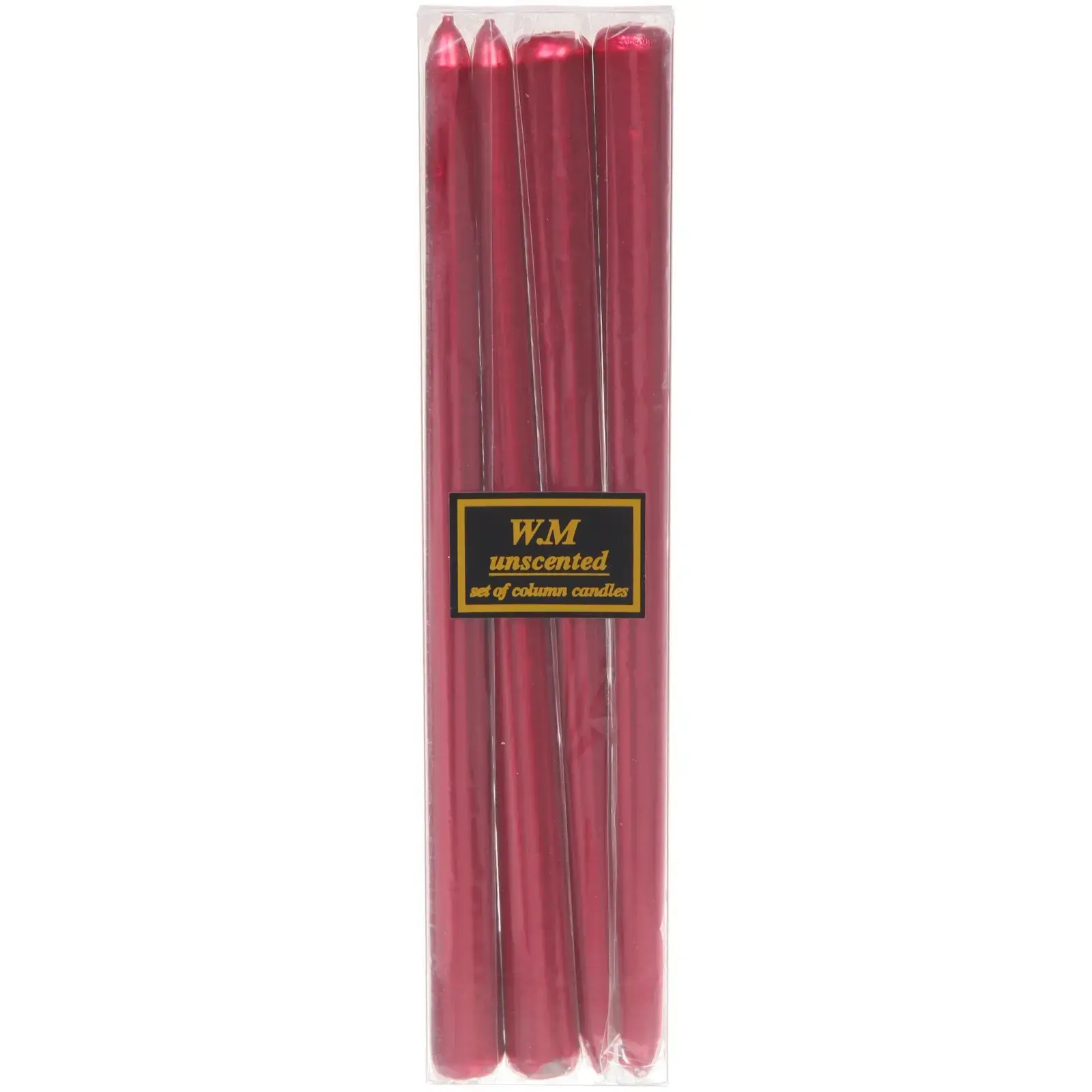 Размер каждой свечи — 2.1×30 см, материал — качественный парафин, устойчивый к растрескиванию. Отгружается комплект из 4 штук, полностью готовых к применению. Подходит для праздничной сервировки стола, свадеб, романтических ужинов или уютных домашних вечеров.