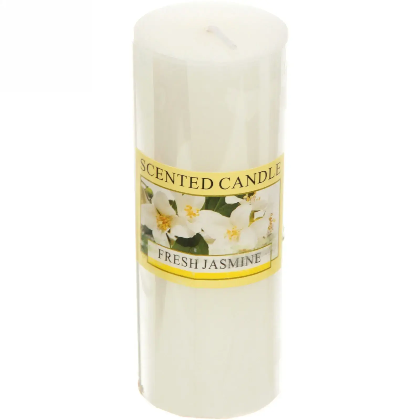 Размер свечи – 4,8x12,4 см. Материал – воск. Один фитиль обеспечивает стабильное горение, а яркий дизайн этикетки с изображением цветов жасмина добавляет эстетики.