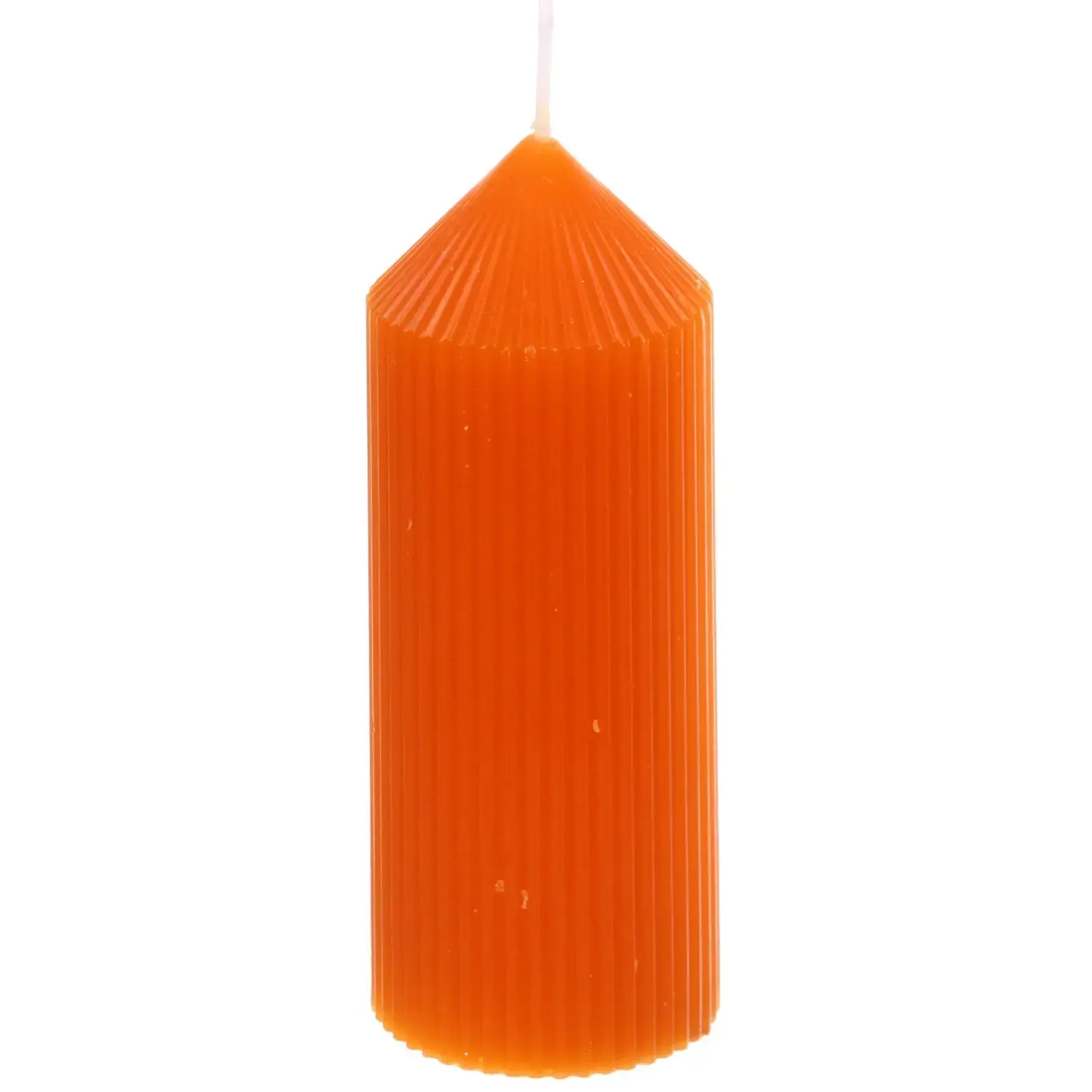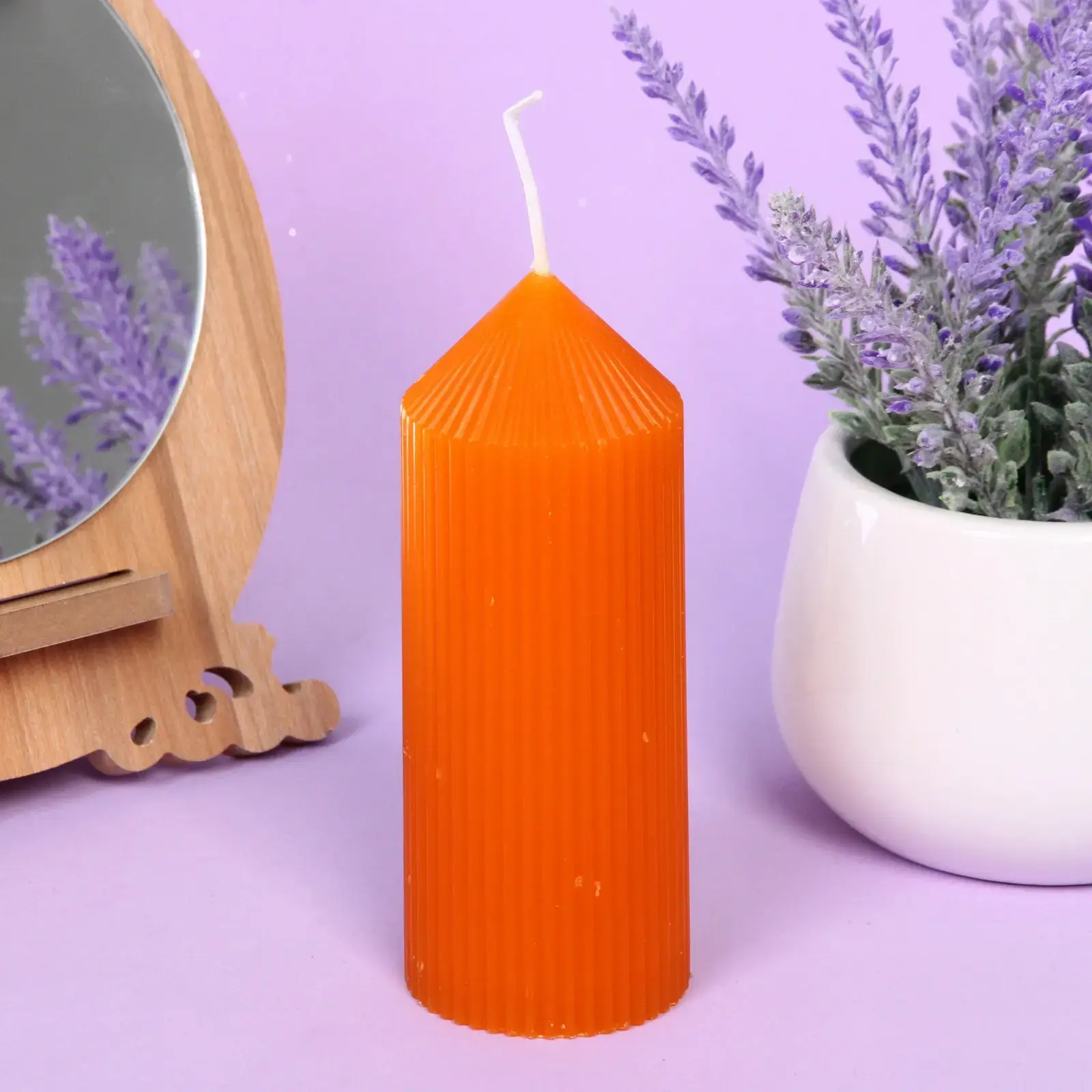 Эта парафиновая свеча в тёплом оранжевом оттенке создаст уют и наполняет пространство мягким приглушённым светом. Яркий цвет и утончённая форма добавят интерьеру живости, а рифлёная поверхность подчеркнёт стильную текстуру изделия. Подходит как для романтического вечера, так и для повседневного декора.