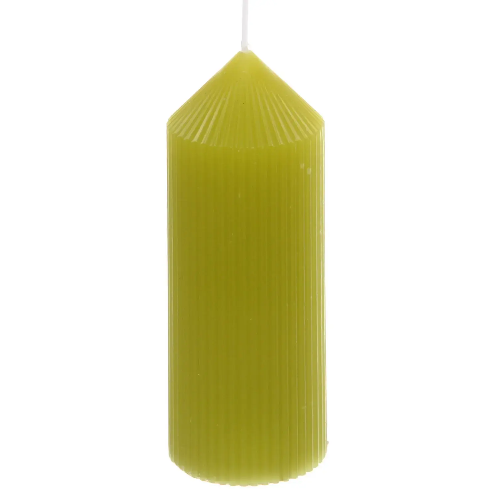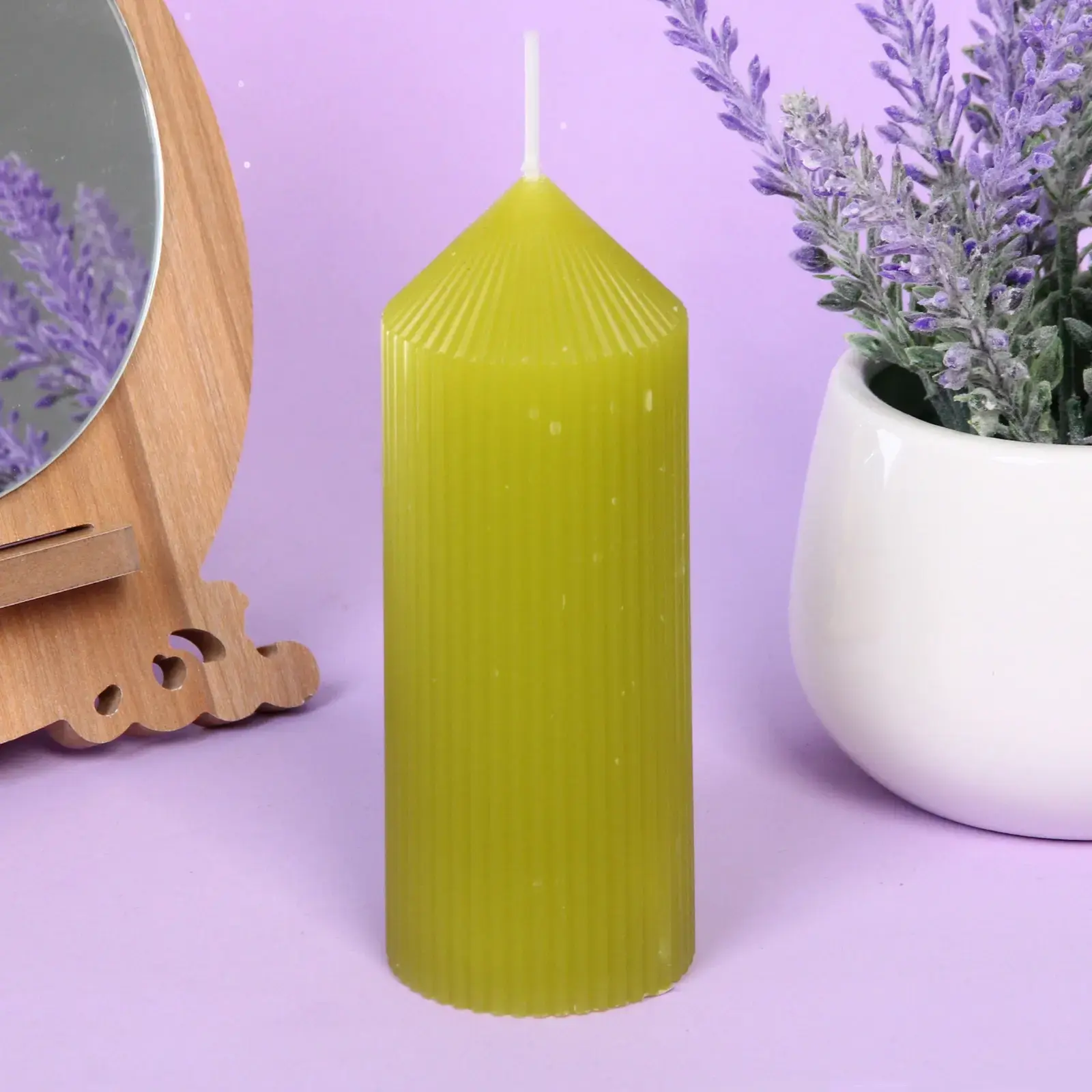 Эта свеча станет элегантным акцентом в интерьере и источником мягкого, располагающего свечения. Её утончённый салатовый цвет и рельефная поверхность с продольными канавками создают визуальный интерес, а классическая форма с конусообразным верхом вписывается как в современный, так и в более традиционный декор.