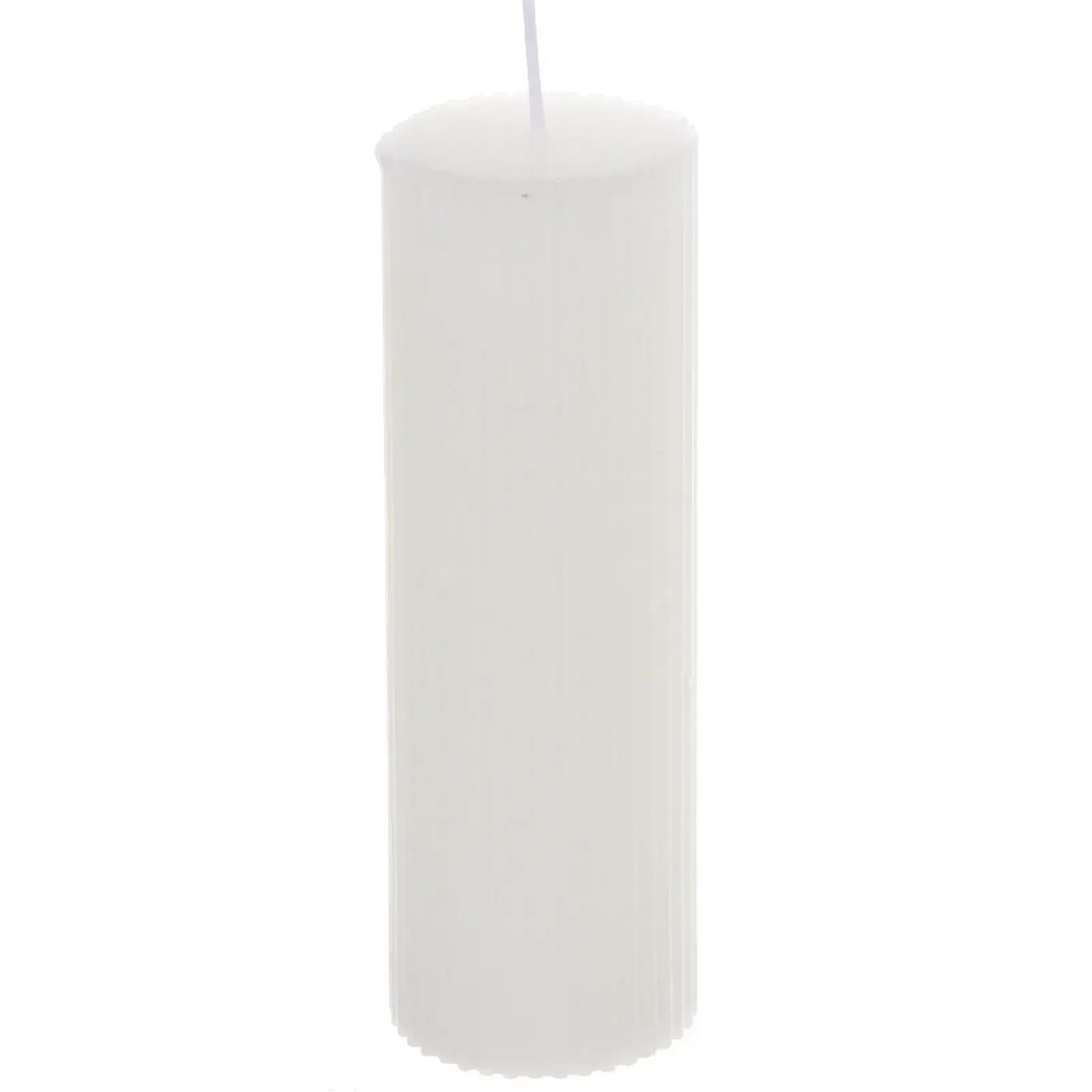 Эта декоративная свеча создаёт атмосферу тепла и уюта, превращая обычный вечер в особенный момент. Её белый цвет гармонично впишется в любой стиль оформления — от минимализма до классической гостиной. Рифлёная поверхность придаёт изделию утончённый вид, а цилиндрическая форма высотой 15 см делает свечу заметным, но ненавязчивым элементом декора.