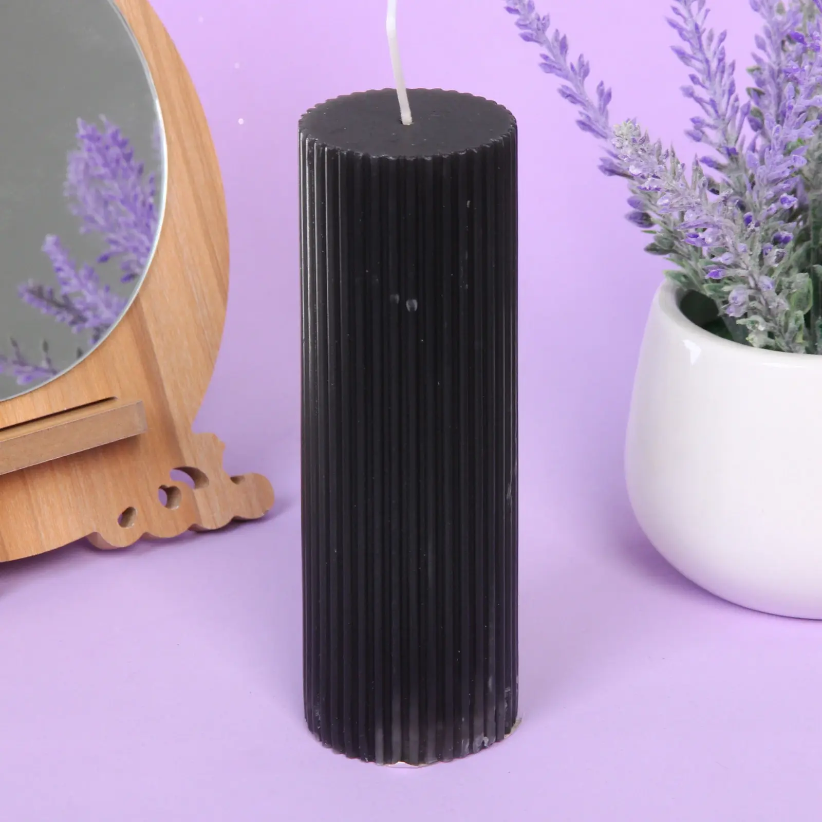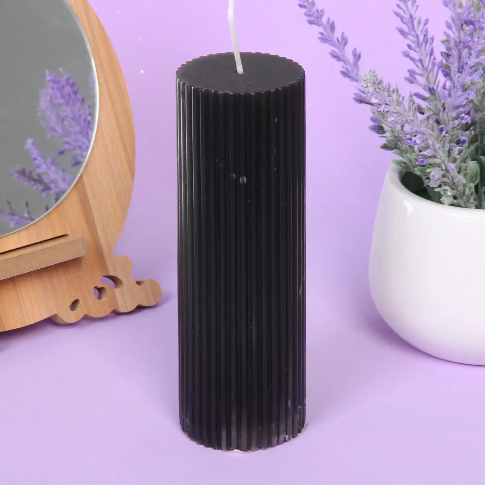 Эта изысканная цилиндрическая свеча черного цвета станет стильным акцентом для любого пространства, создавая атмосферу уюта, таинственности и гармонии. Рифленая поверхность придает ей утонченную фактуру, а игра теней делает свечение особенно мягким и приятным.