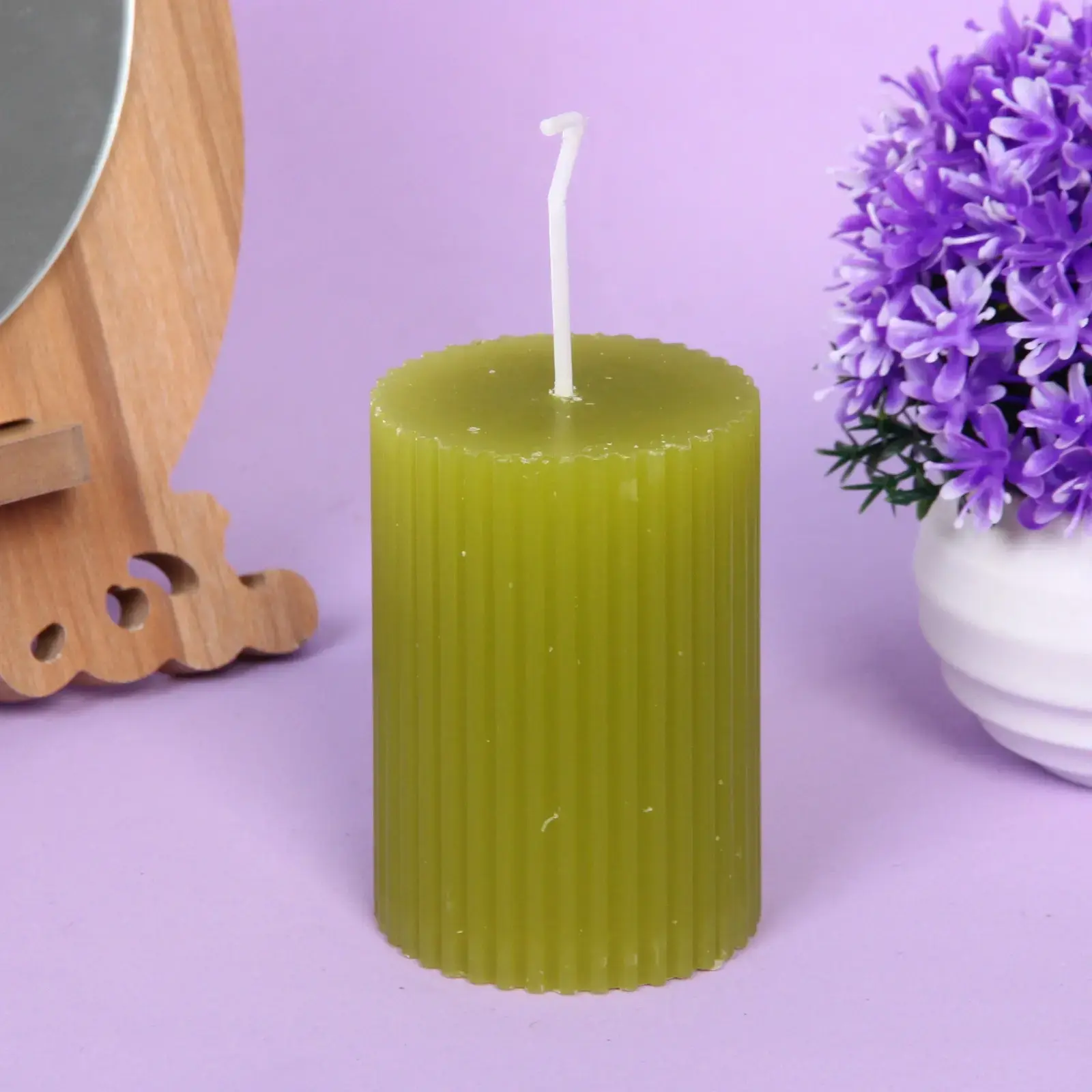 Эта свеча соединяет в себе утончённый дизайн и практичность, создавая уютную атмосферу в любой комнате. Её мягкий салатовый оттенок гармонично вписывается в современный интерьер, добавляя тепла и спокойствия. Используйте свечу для романтических вечеров, расслабляющих моментов или как часть декоративной композиции.