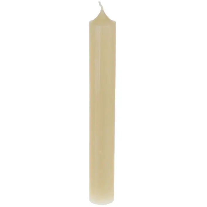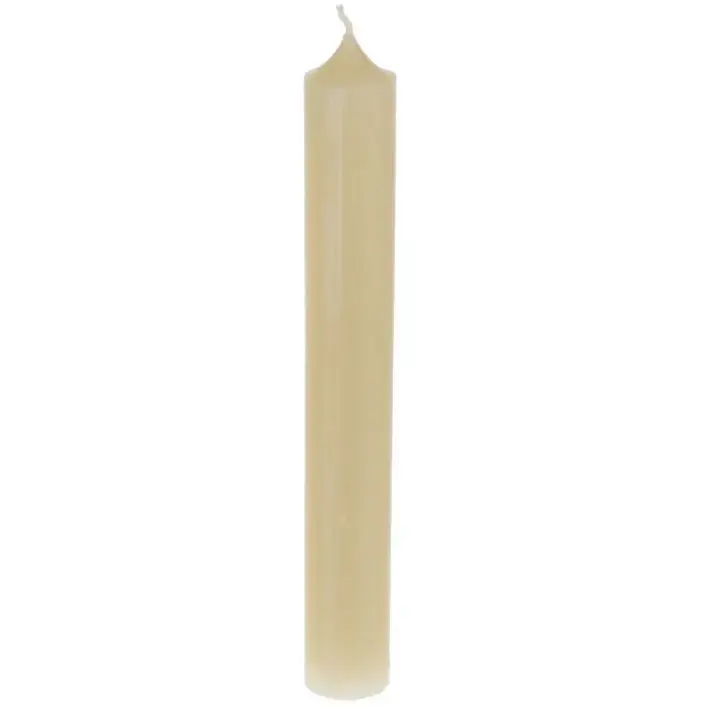Цилиндрическая вытянутая форма с зауженным верхом и белым фитилем обеспечивает безопасное и удобное использование. Отгружается один товар, цвет определяется как белый согласно характеристике изображения. Материал — парафин, который обеспечивает плавное плавление и ровное горение без копоти.