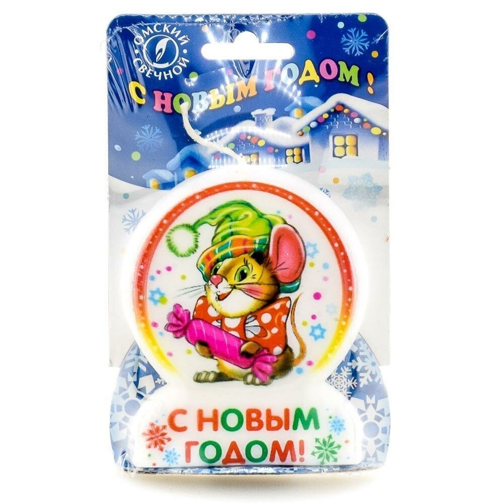 Идеальна для украшения праздничного стола, подарка или декорации в комнате. Свеча имеет объем 200 г, округлую форму и яркий дизайн с изображением мышонка и надписью «С Новым Годом!», выполненным в насыщенных цветах: красный, зелёный и белый, что гарантирует эффектный внешний вид.