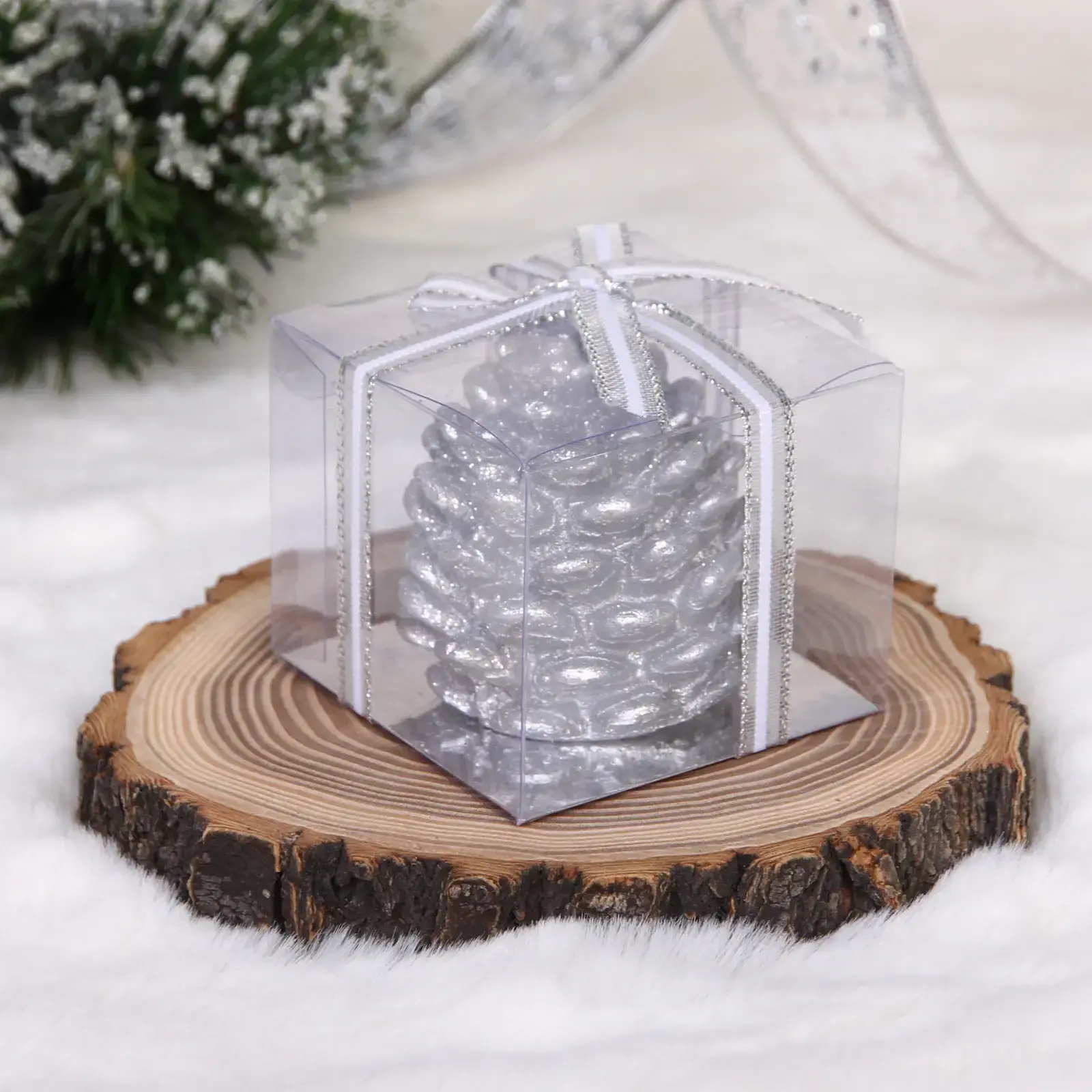 Эта изысканная свеча станет идеальным элементом декора для вашего дома в новогодние праздники. Выполненная в форме шишки и окрашенная в серебристый цвет, она добавит нотку уюта и стиля в любое помещение. Благодаря блестящей отделке, свеча будет красиво отражать свет, создавая волшебную атмосферу.