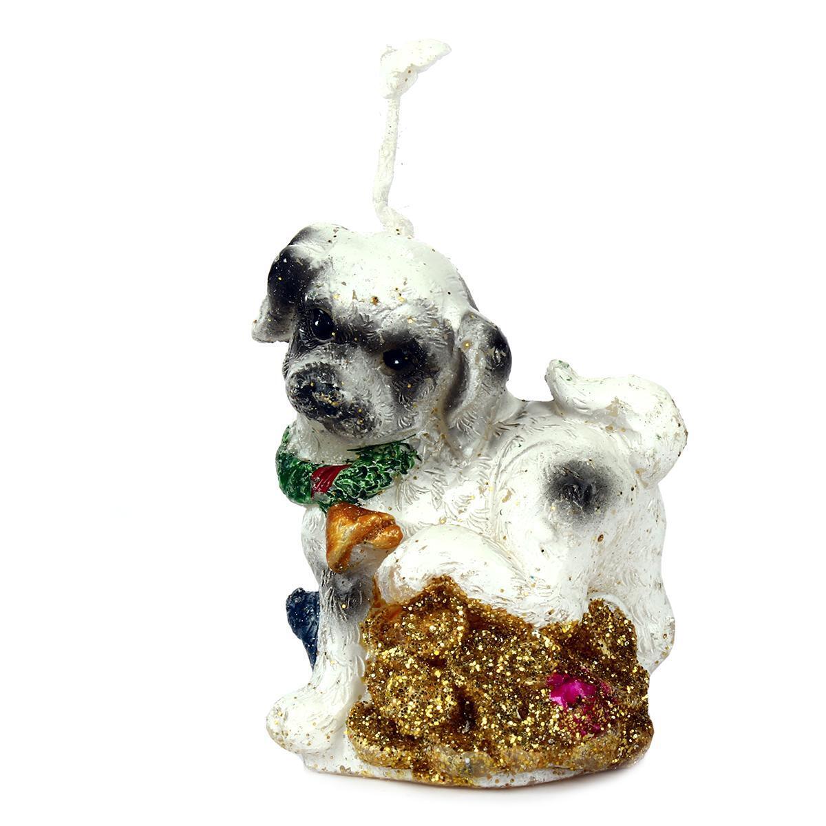 Эта свеча прекрасно подходит для создания уютной атмосферы во время новогодних праздников, карнавальных вечеринок или семейных встреч. Вы можете использовать её как самостоятельный элемент декора или в сочетании с другими новогодними украшениями. Свеча 'Собака' станет отличным акцентом на праздничном столе или в интерьере вашей комнаты.