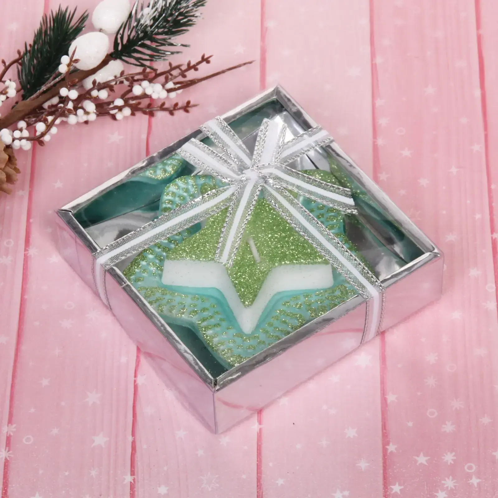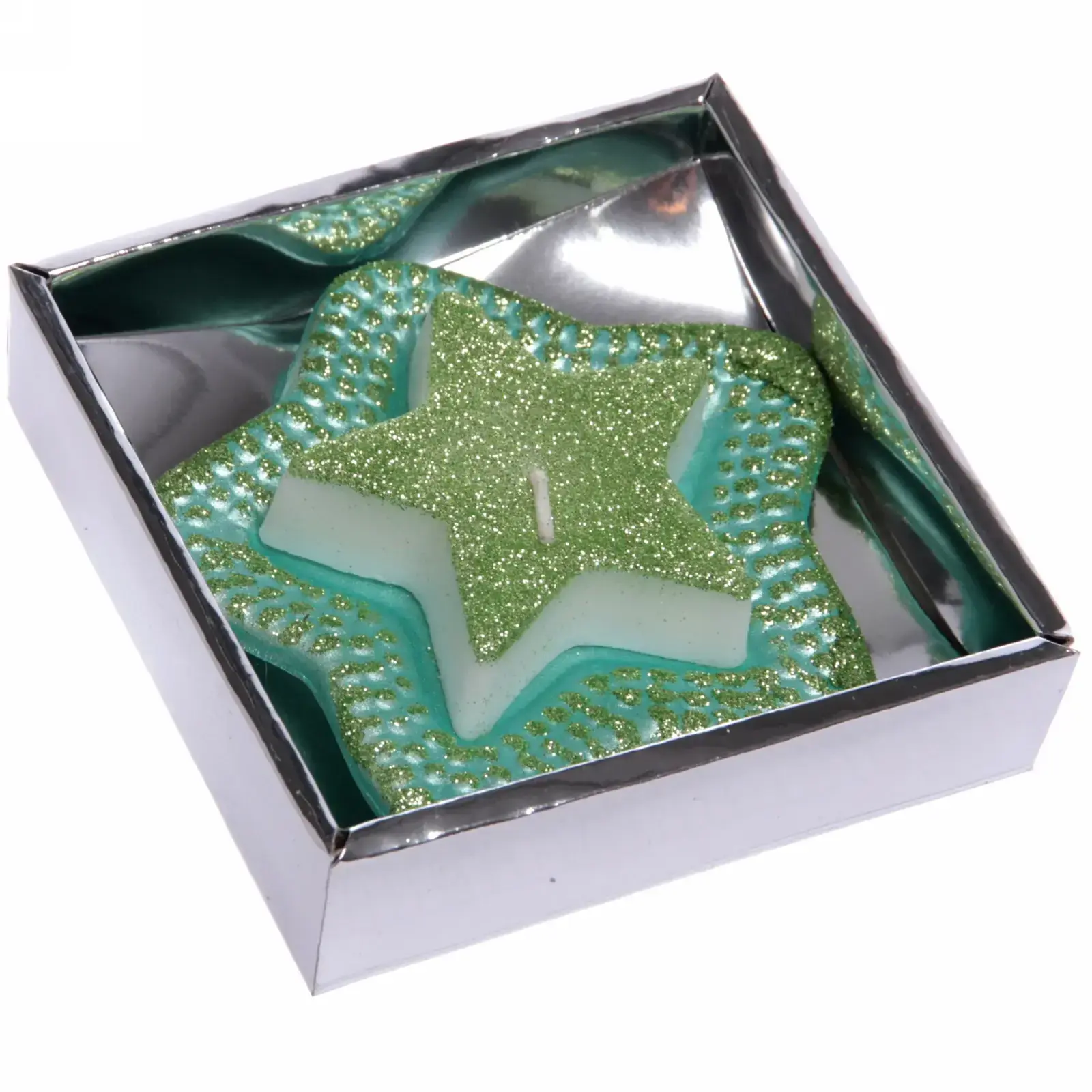 Свеча «Звездопад» создаст атмосферу праздника и уюта в вашем доме. Многослойный дизайн с переходами зелёного и голубого оттенков, мерцающие блёстки и изящная форма звезды превратят обычный вечер в сказочное предновогодье.