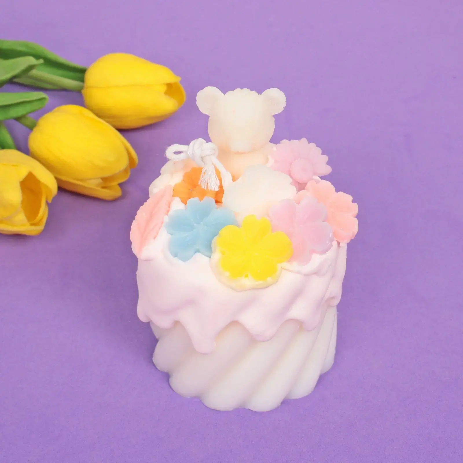 Эта свеча идеальна как декоративный элемент в гостиной, спальне, офисе, а также как подарок к праздникам. Благодаря форме торта и цветочным деталям она привлекает внимание и добавляет шарм.