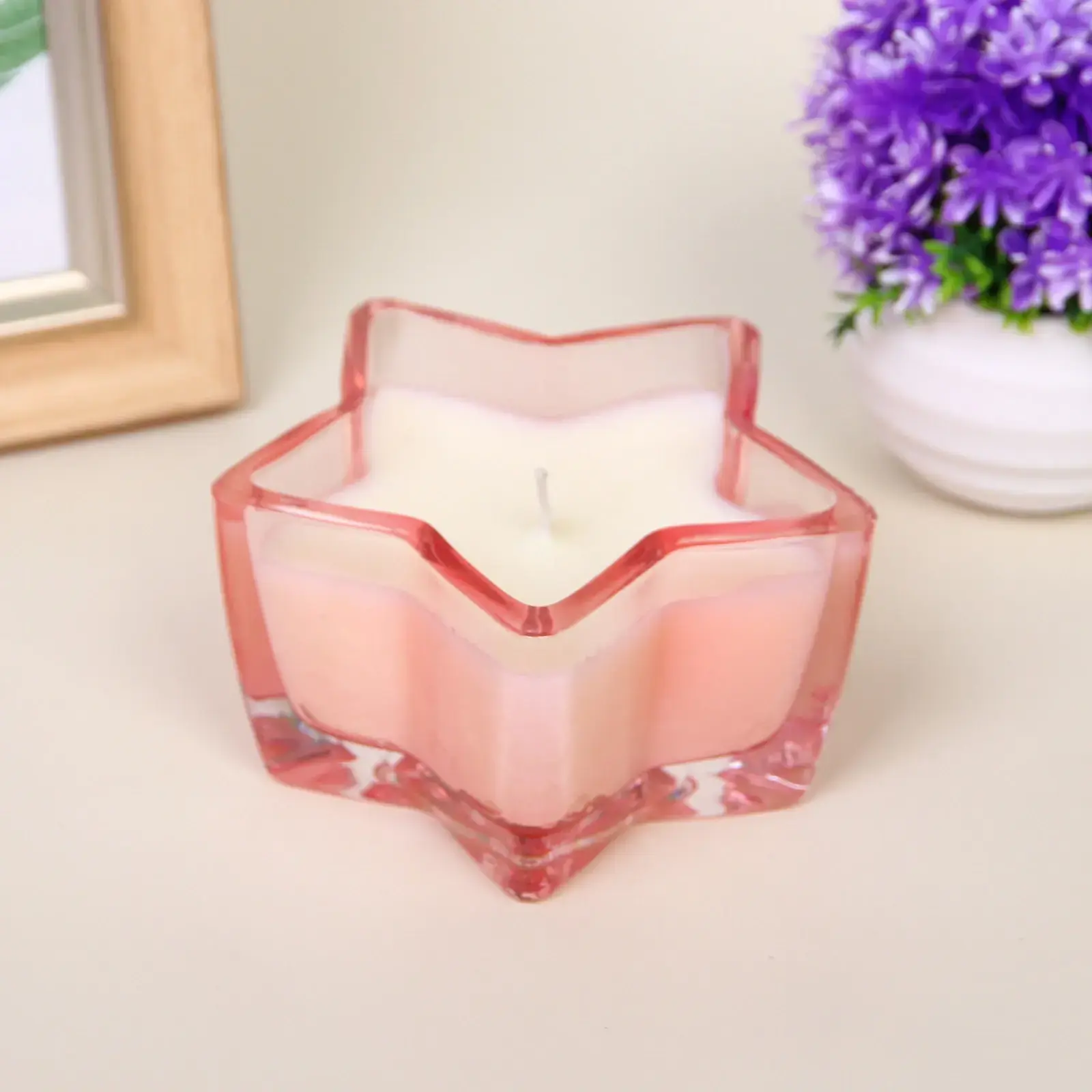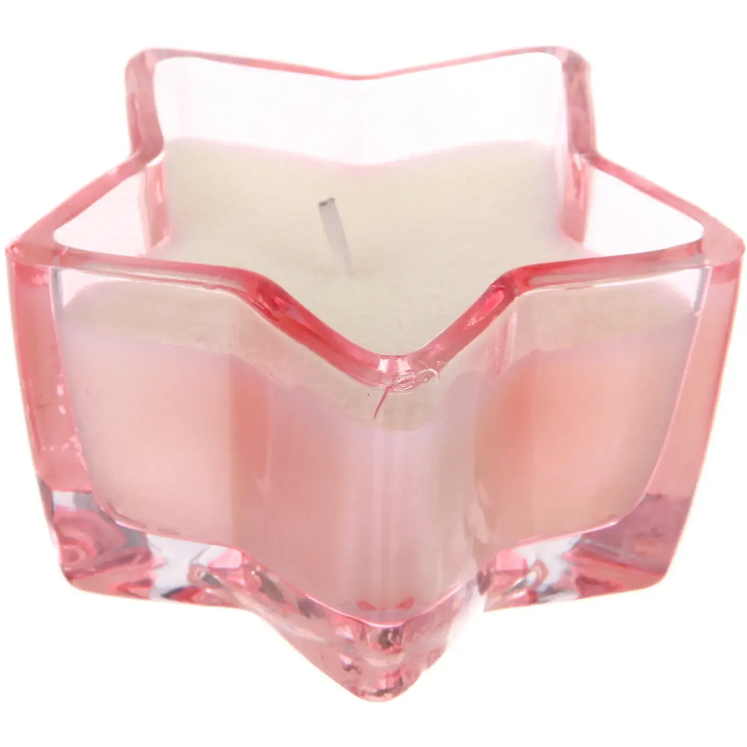 Добавьте в интерьер атмосферу уюта и мягкого тепла с этой стильной свечой в стеклянном подсвечнике необычной формы. Дизайн в виде пятиконечной звезды и нежный розовый оттенок создают гармоничное сочетание, которое подойдет для романтических вечеров, торжественных событий или просто для расслабления дома после долгого дня.