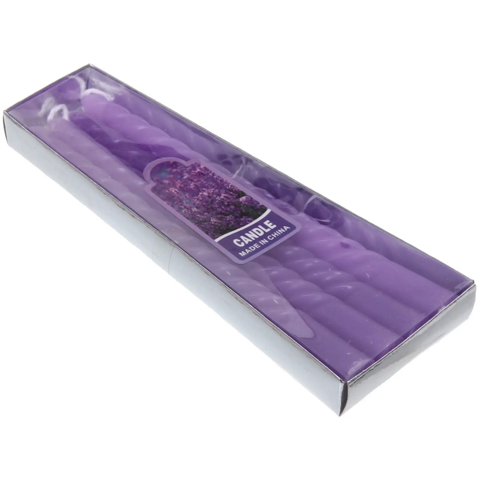 Свечи подходят для украшения праздничного стола, создания романтической атмосферы или как элемент ежедневного декора. Фиолетовый цвет и спиралевидный рельеф придают им утончённый вид. Прекрасный выбор для приятного вечера в кругу семьи, расслабляющего уикенда или особого события.