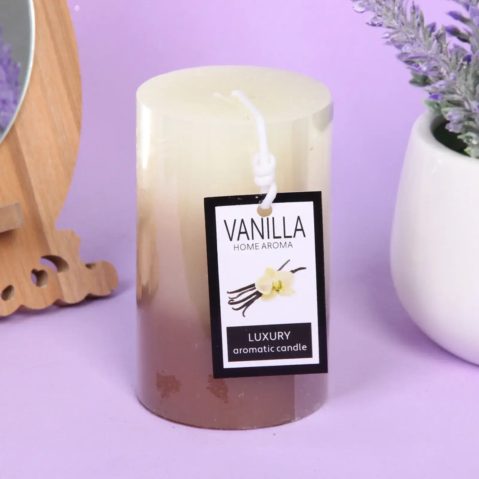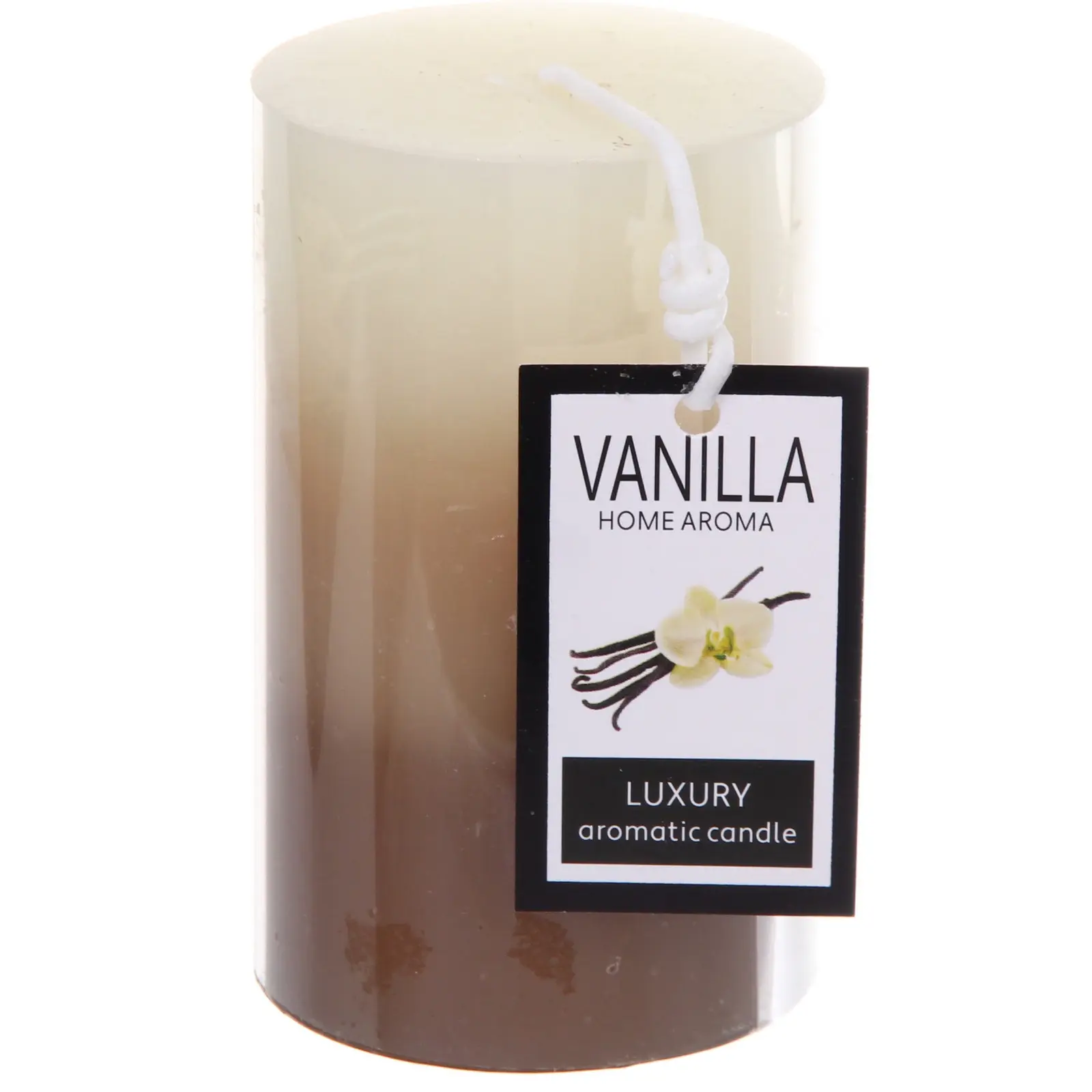 - Двуцветный дизайн — плавный переход от кремового верха к тёплому коричневому низу делает свечу стильным элементом интерьера.