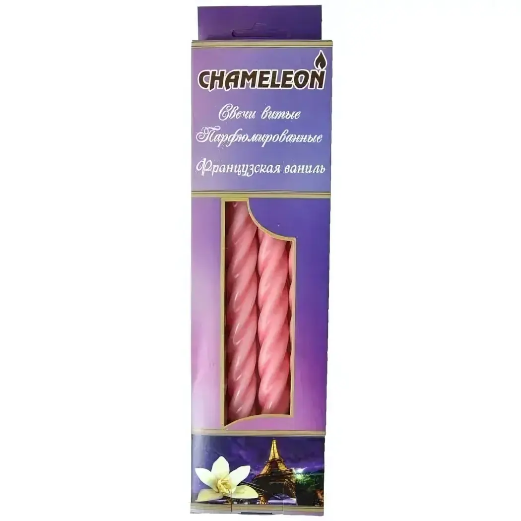 Свеча витая крупный виток, 4 шт, цвет розовый, аромат французская ваниль