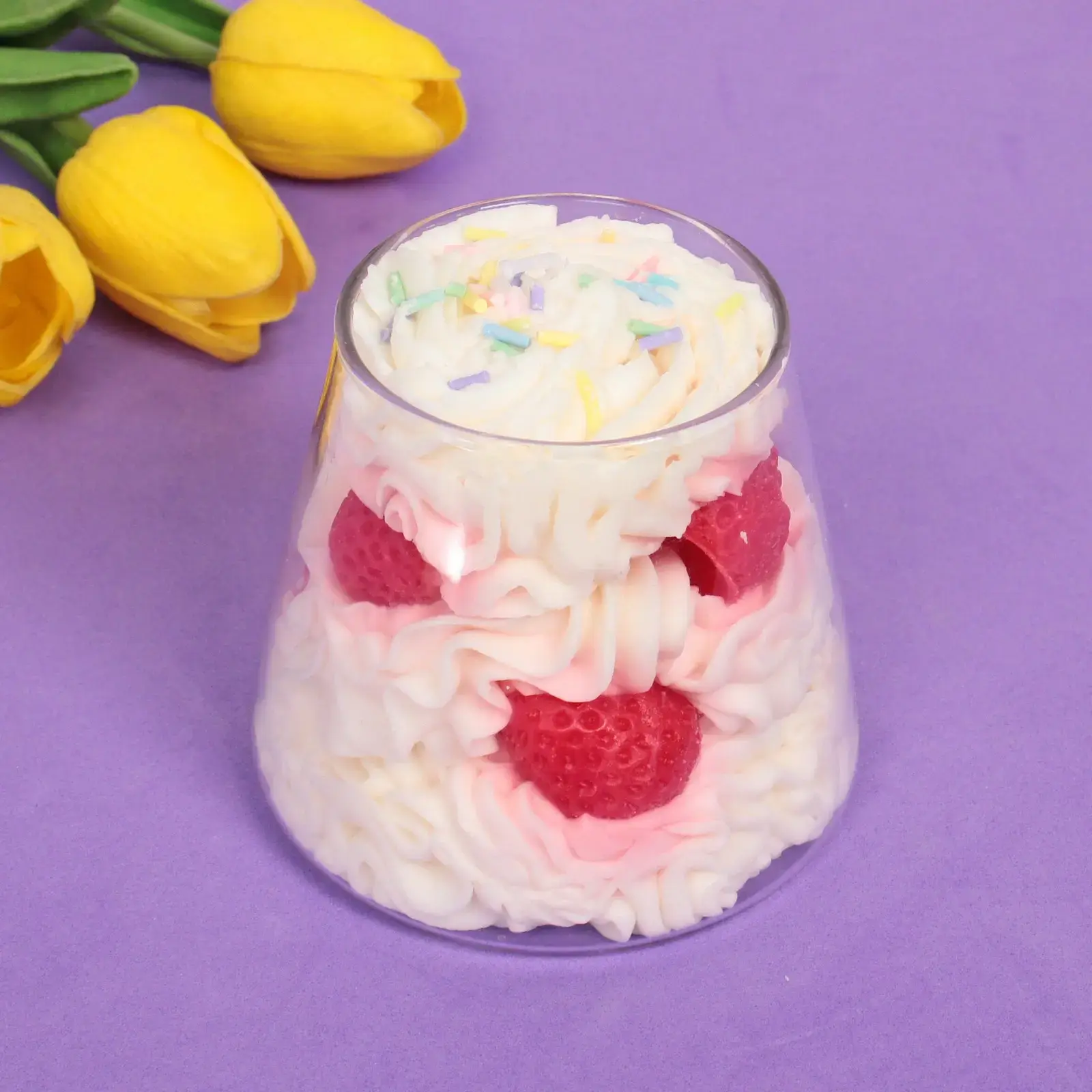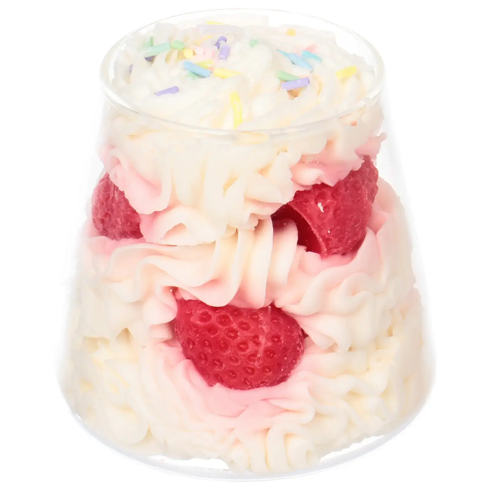 Эта декоративная свеча в прозрачном стакане создана для тех, кто ценит атмосферу тепла и уюта. Её дизайн повторяет аппетитный десерт с пышным кремом, ягодами и разноцветной посыпкой, вызывая приятные эмоции и желание дополнить интерьер чем-то необычным.