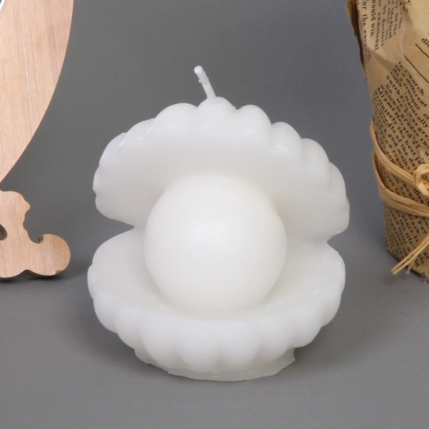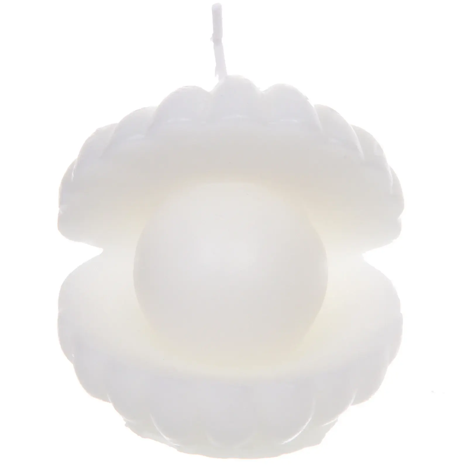 Практические детали: Размеры – высота около 8 см, диаметр 10 см, материал – парафин, цвет – белый, форма – раковина с жемчужиной. Упакована в прозрачную пластиковую коробку для сохранности и удобства хранения.