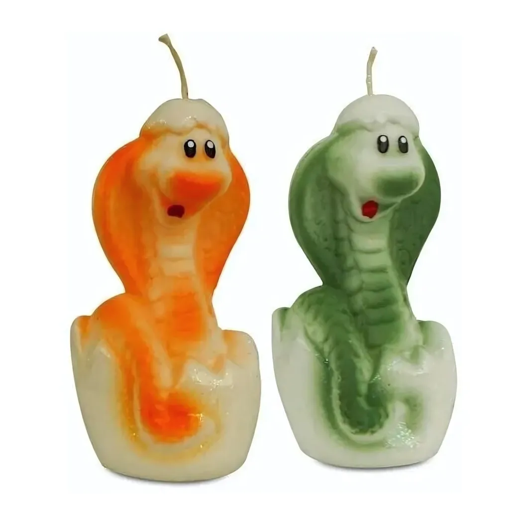 - Уникальный дизайн: Свеча выполнена в форме кобры с поднятым капюшоном, с прорисованными глазами и улыбкой. Детализация делает её настоящим мини-шедевром.
