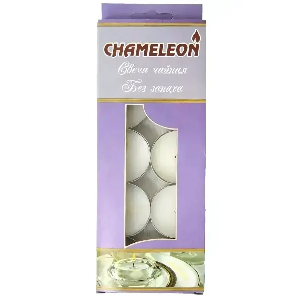 Набор из 10 белых чайных свечей в гильзе от Chameleon создаст мягкое освещение без навязчивых ароматов. Универсальный размер 3.8×2.5 см подходит для большинства подсвечников и аромаламп.