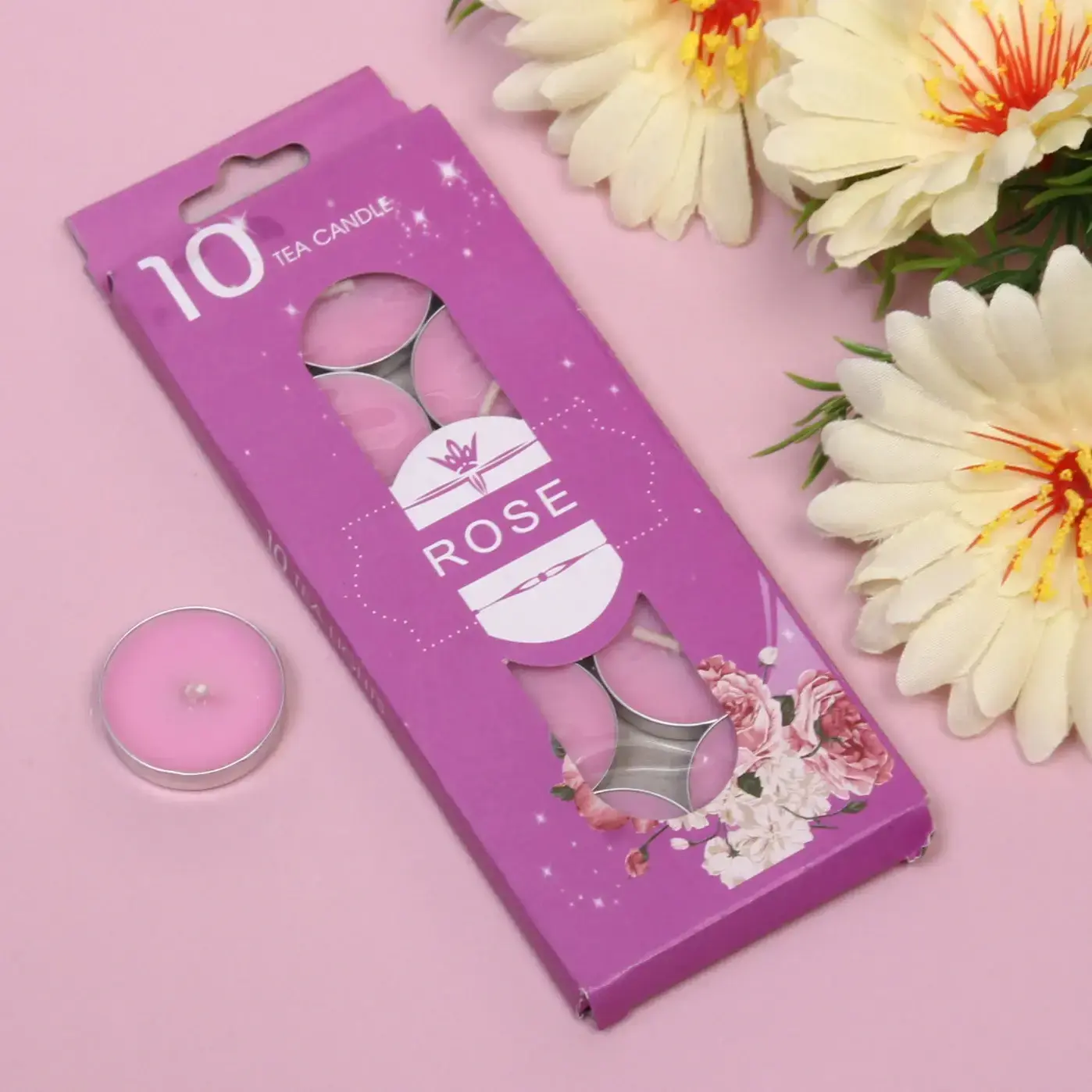 Свечи чайные ароматические "Влюбленная роза", 10шт, розовый воск в металлическом корпусе