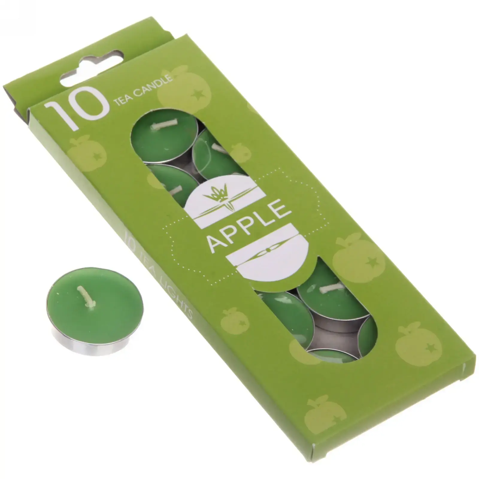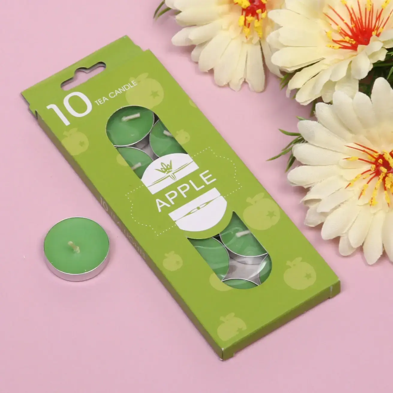 Свечи чайные «яблочный бум» набор 10 шт зеленый парафин металл аромат хвойным уютом