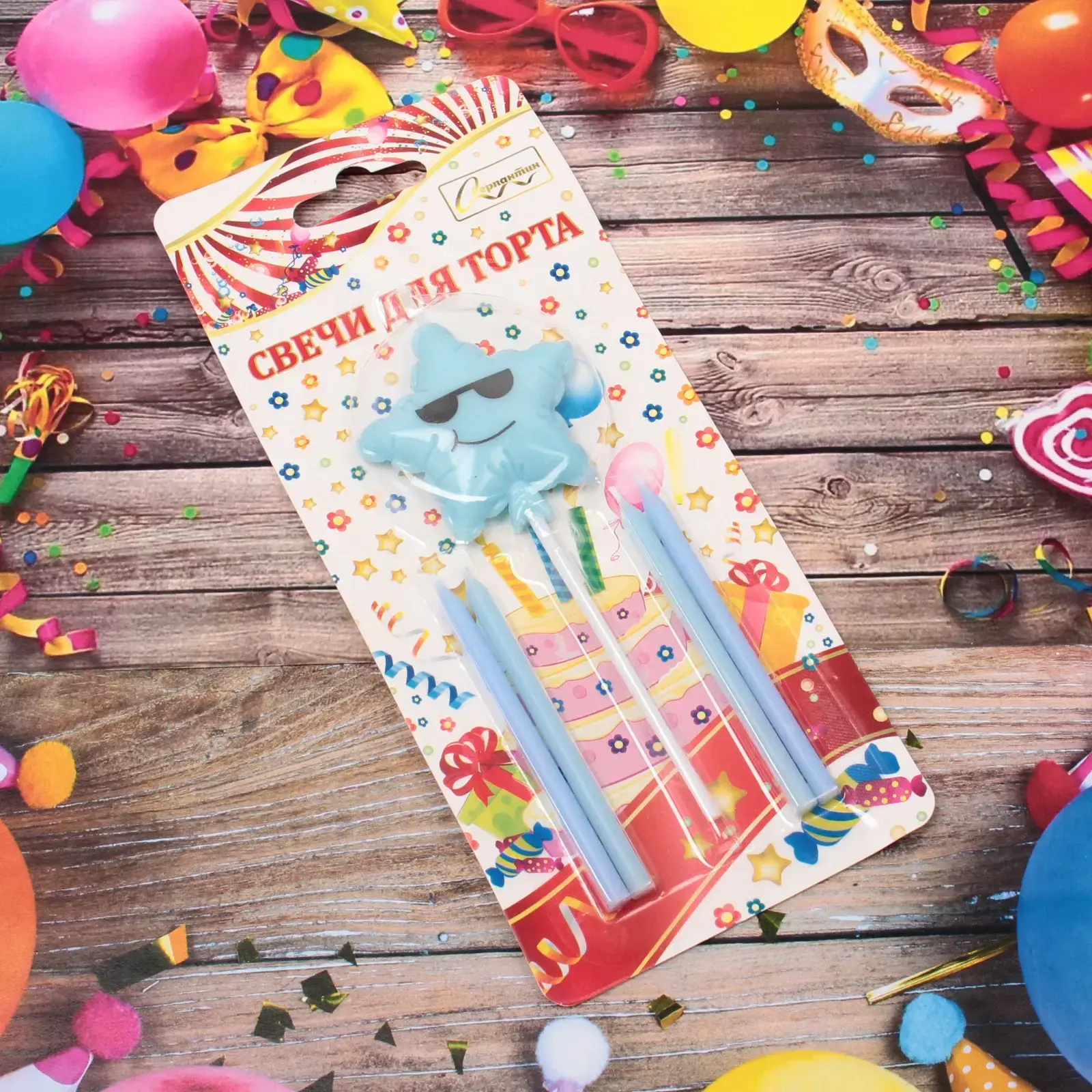 Каждая свеча имеет высоту 8 см, а звезда — размер 4х5 см. Они выполнены в голубом цвете, что делает их универсальными для любого праздника. Упаковка оформлена в ярком праздничном стиле, что дополнительно подчеркивает их назначение. Не упустите возможность сделать ваш праздник ярче и веселее с помощью свечей «Крутая звезда»!