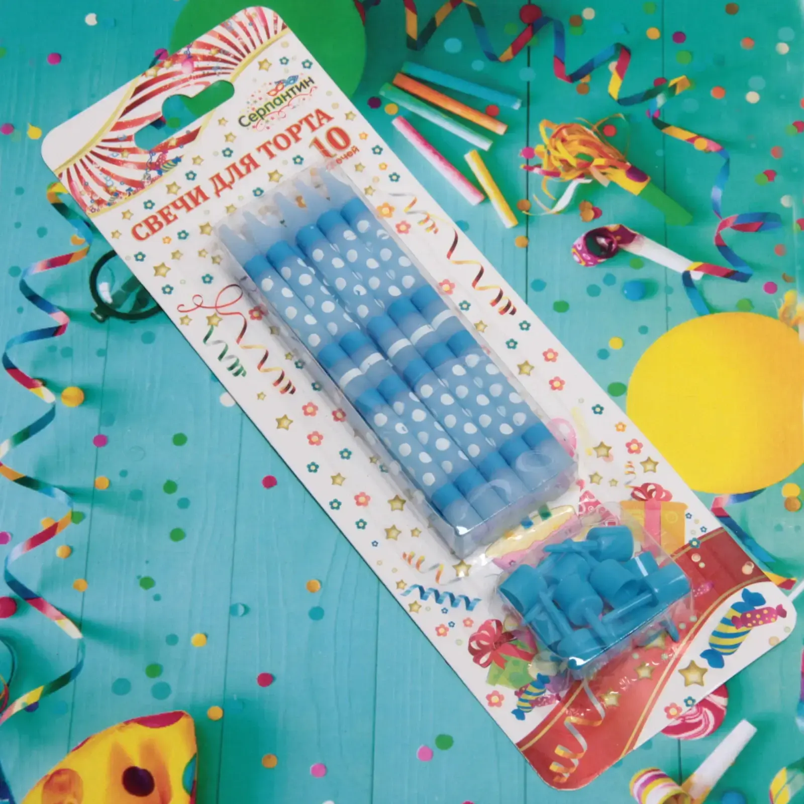 Свечи имеют цилиндрическую форму и стандартный размер, что делает их универсальными для любого торта. Упаковка включает в себя пластиковые подставки для удобства установки. Не упустите возможность сделать ваш праздник незабываемым с помощью этих красивых свечей!