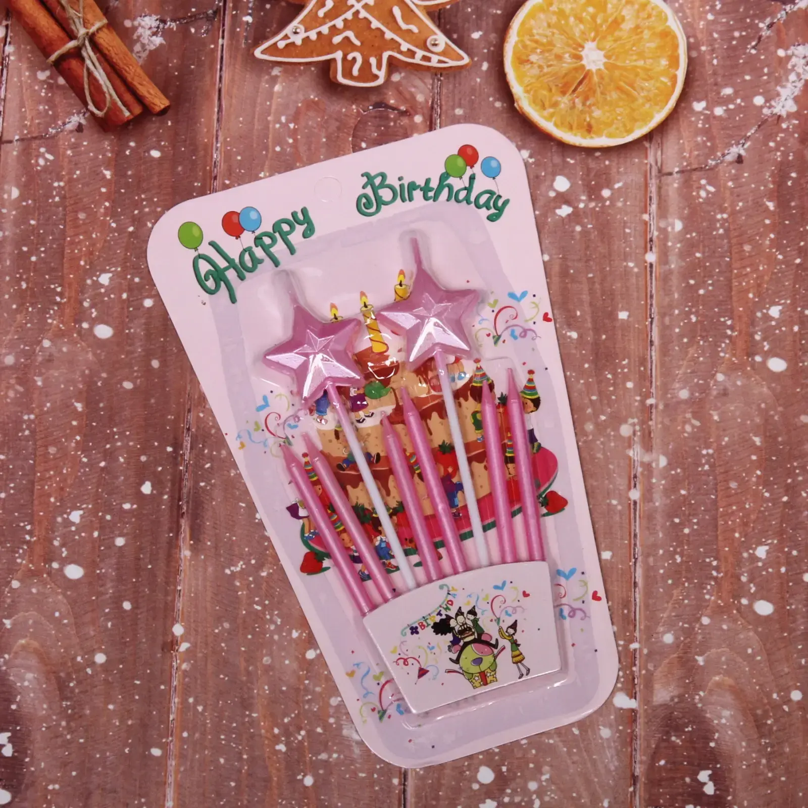 Свечи выполнены из парафина и окрашены в нежный розовый цвет, что делает их идеальными для девичников и праздников в пастельных тонах. Упаковка оформлена в ярком и веселом стиле, что создает дополнительное праздничное настроение. На упаковке присутствует надпись «Happy Birthday», что подчеркивает назначение товара. Эти свечи станут отличным дополнением к любому торту и создадут атмосферу веселья и радости на вашем празднике.