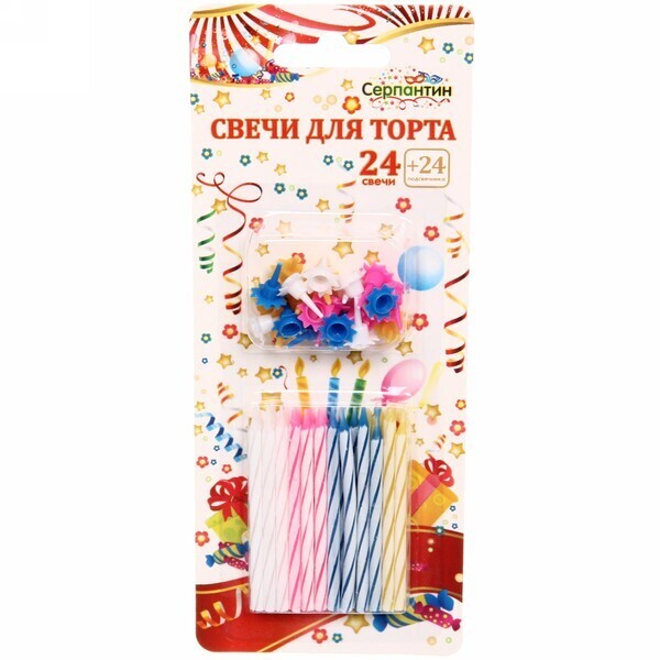 - Яркие цвета: 12 тонких свечей в белом и розовом цветах, а также 12 полосатых свечей в синих и желтых оттенках.