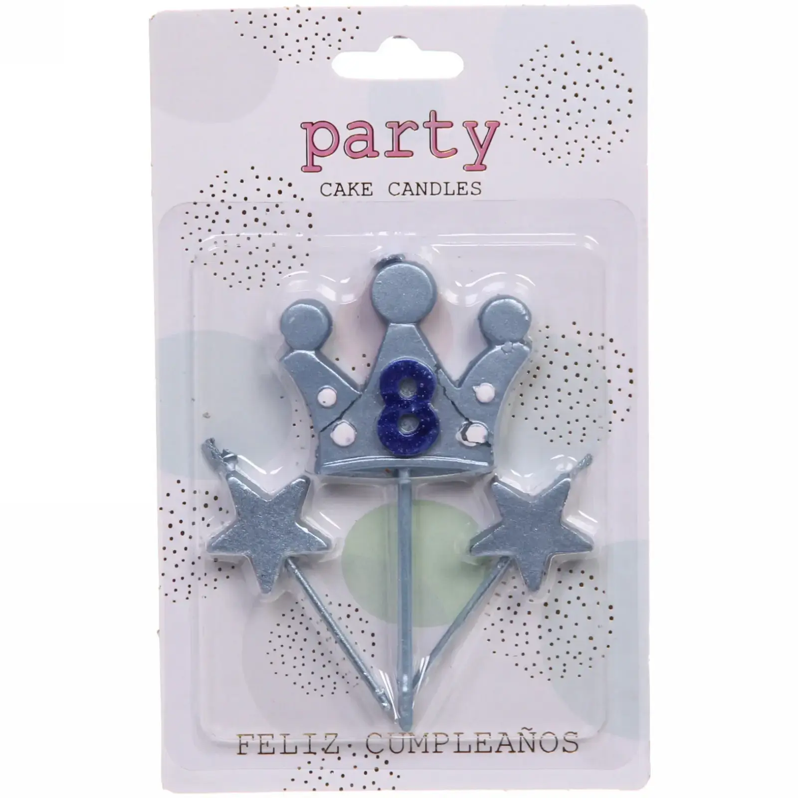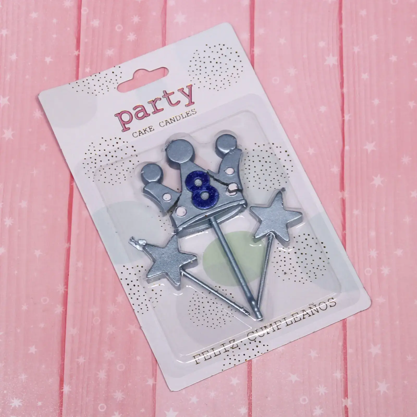Почему стоит выбрать именно эти свечи? Во-первых, их оригинальный дизайн в виде короны с цифрой «8» и звезд делает их уникальными. Во-вторых, голубой цвет с блестящими элементами добавляет праздничного настроения. В-третьих, они изготовлены из качественного парафина, что гарантирует их долговечность и безопасность при использовании.