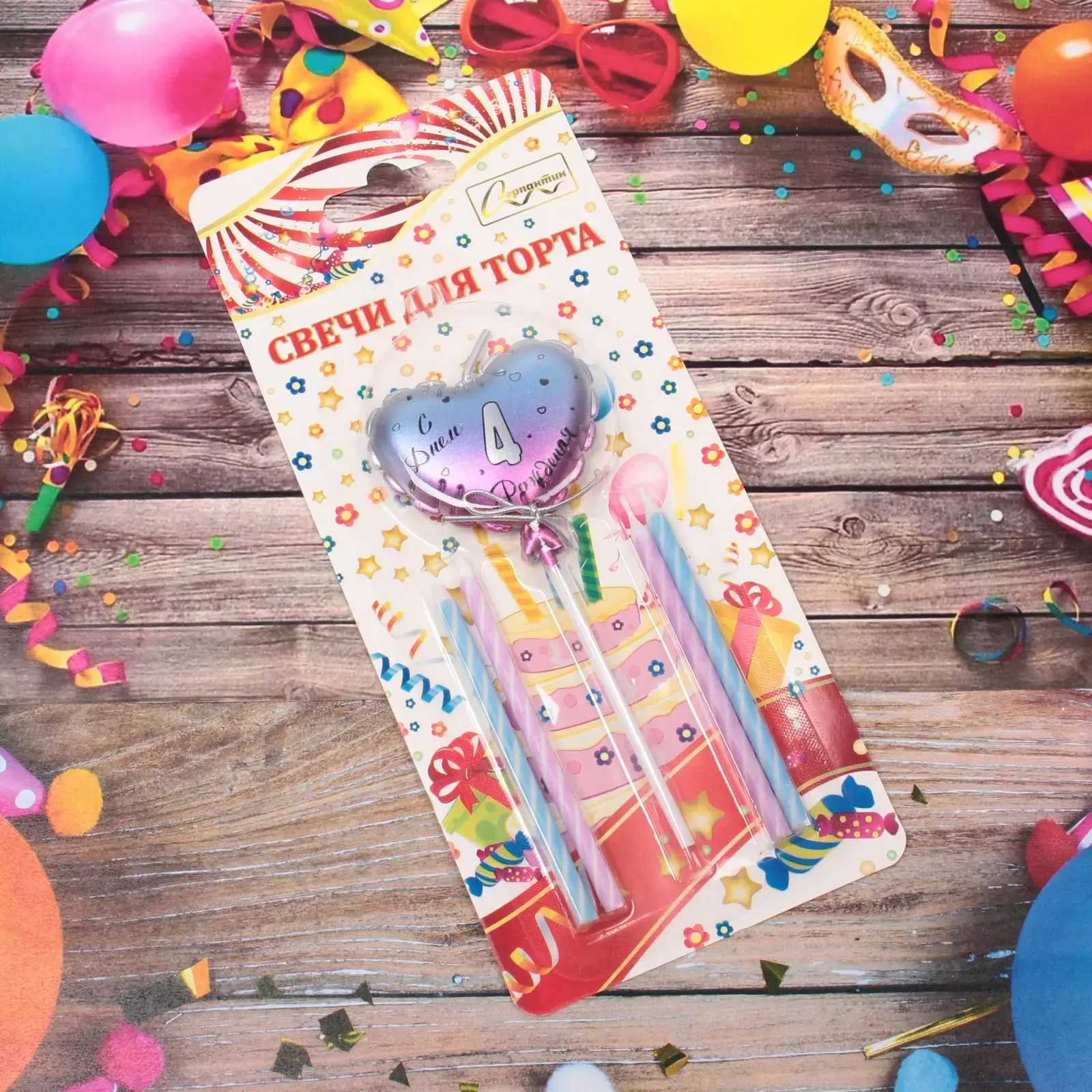Свечи для торта Цифра «4» — это идеальное украшение для дня рождения вашего ребенка. Они добавят яркие цвета и праздничное настроение на любой торт, делая его центром внимания. Сердцевидная свеча с надписью «С Днём Рождения 4» и три обычные свечи в светло-розовых и светло-голубых тонах создадут атмосферу веселья и радости.