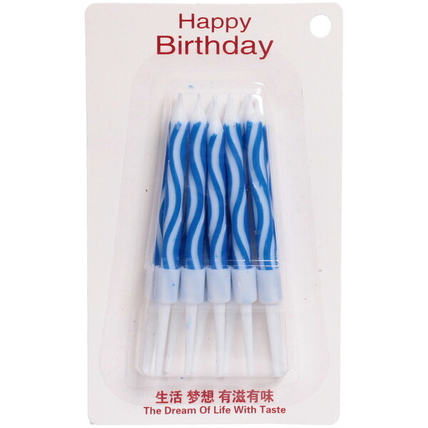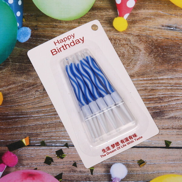 Свечи имеют стандартный размер 5,7 см, что делает их универсальными для большинства тортов. Они легко устанавливаются и подходят для любого стиля оформления. Праздничный дизайн с синими полосами отлично сочетается с различными цветами тортов и десертов, добавляя яркие акценты.