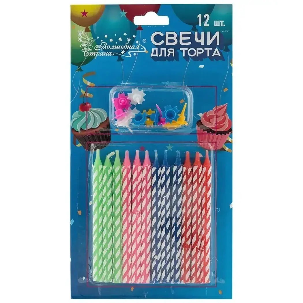 Свечи для торта 'Волшебная страна' 12шт, 9см, цвета в ассортименте