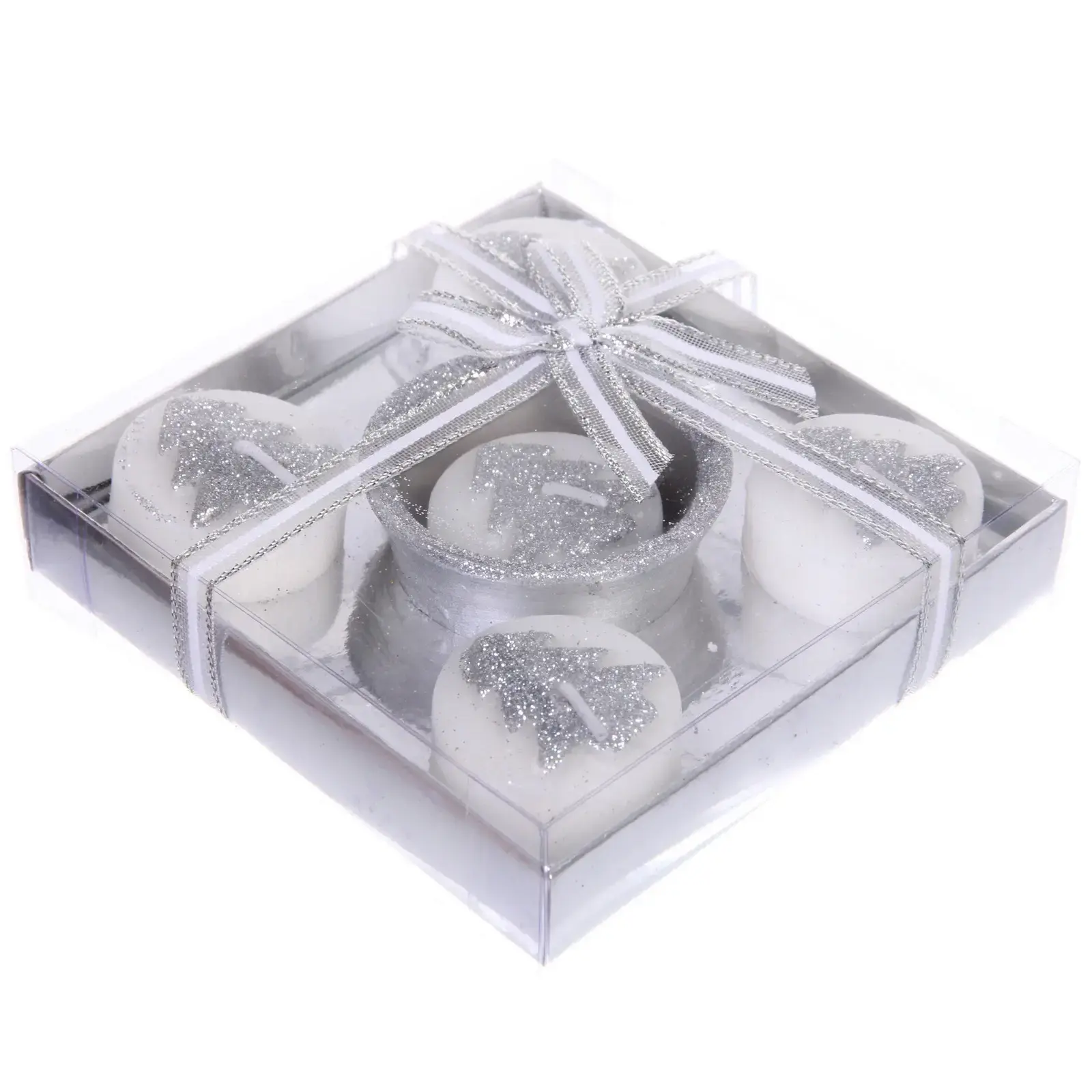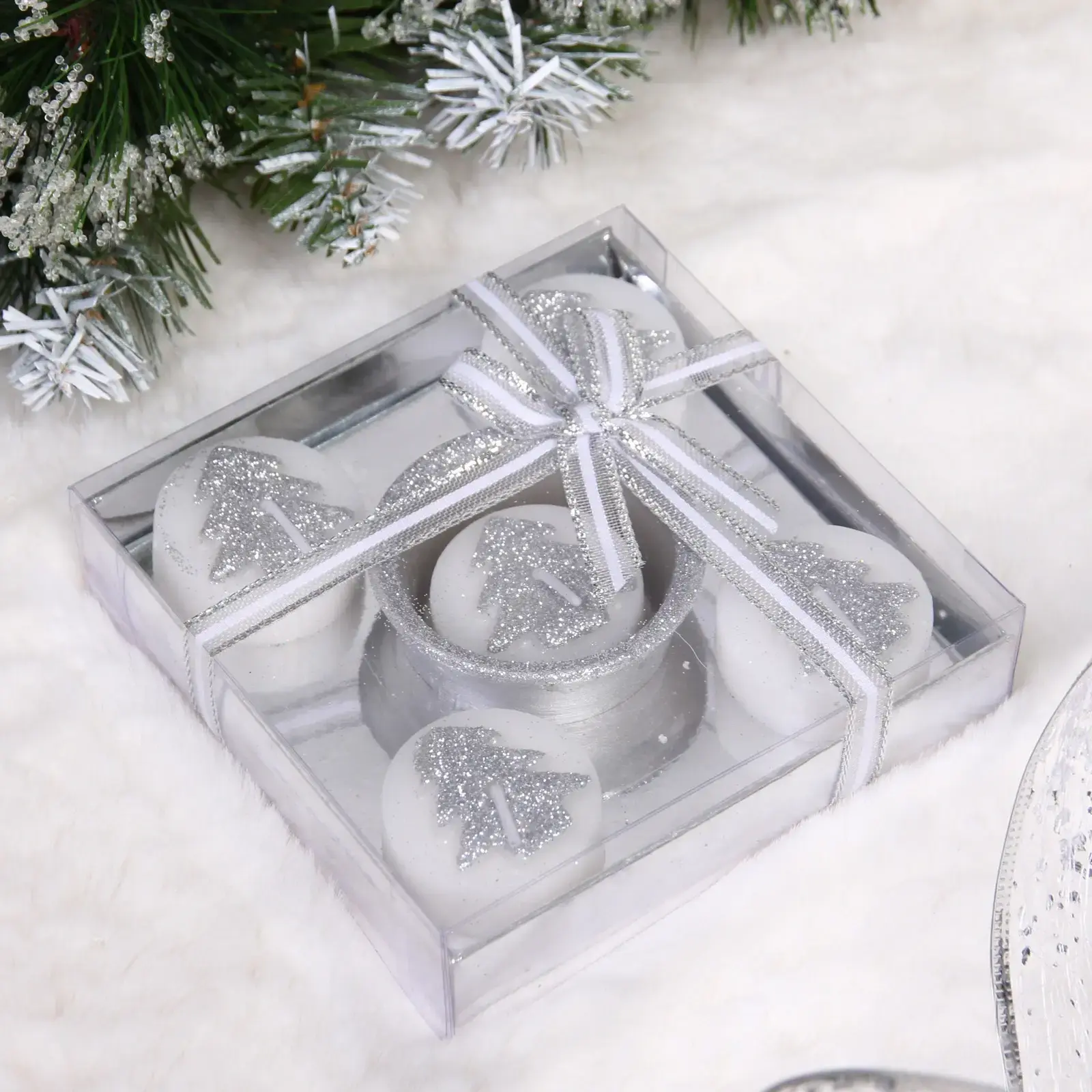 Набор новогодних свечей 'Ель', серебро, 11.5х11.5х3 см, 5 штук
