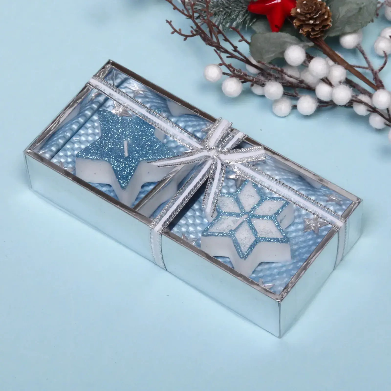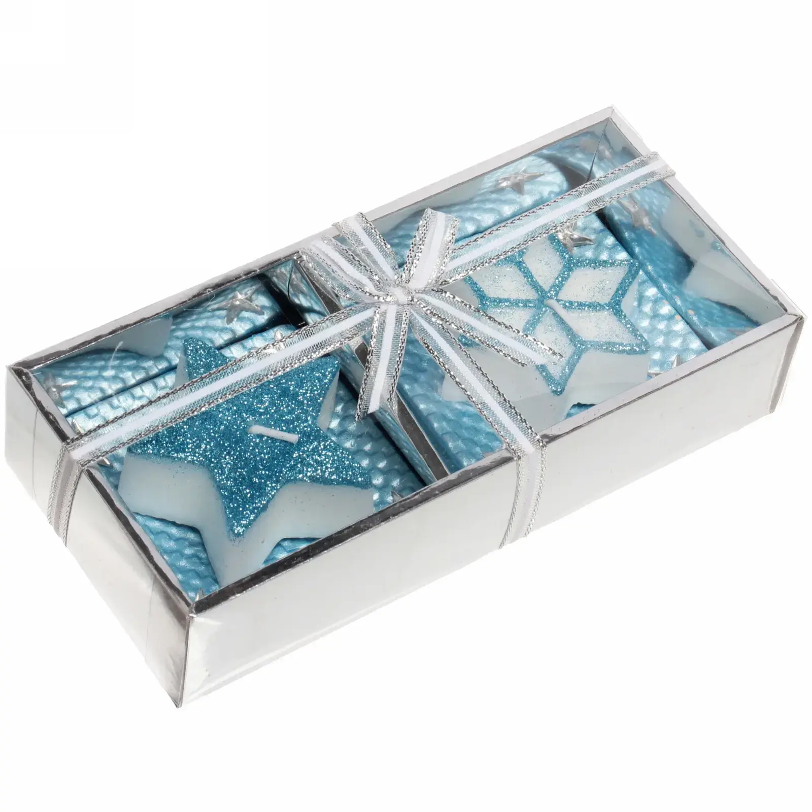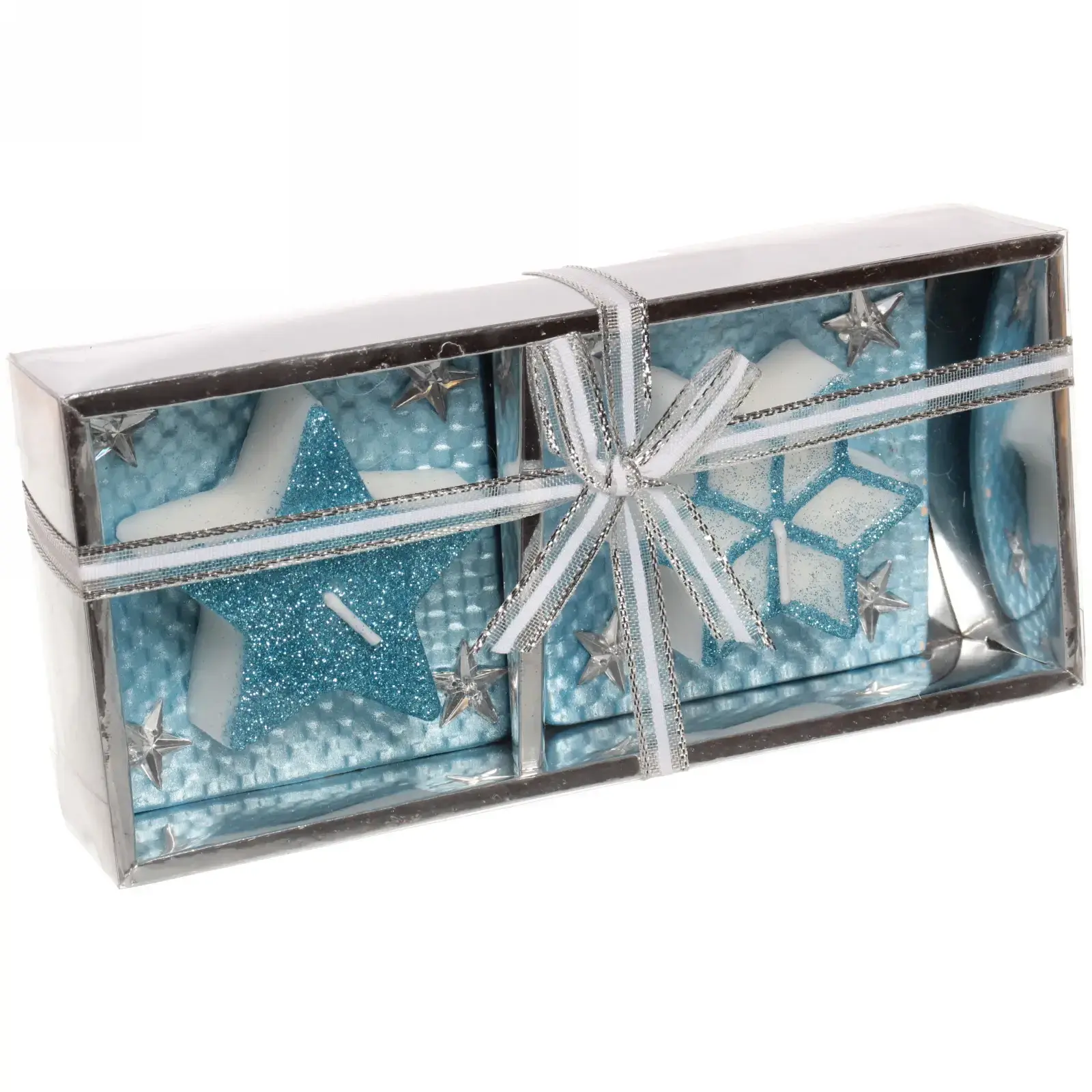 Набор новогодних свечей "Искры" 3 шт, голубой с блестками, 18.5x8.5x4 см