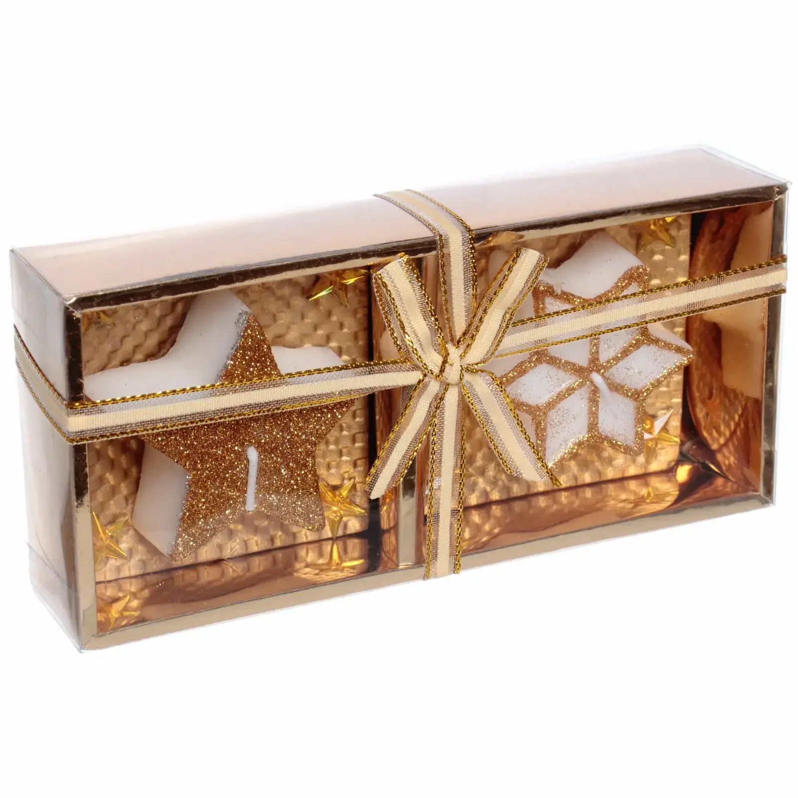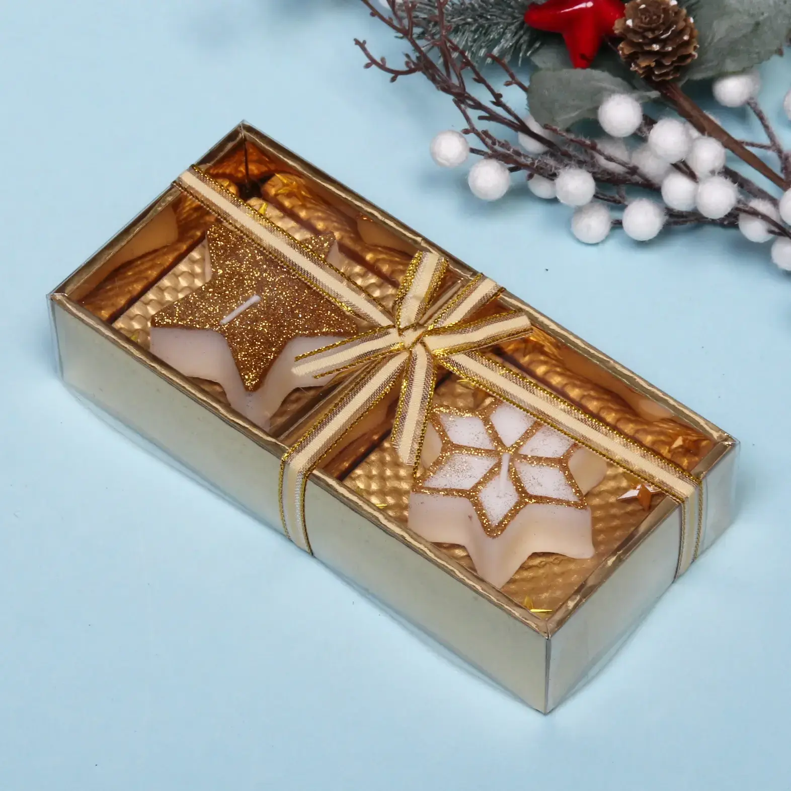- Эстетичный дизайн: свечи в форме звезды и снежинки с золотистым блеском.