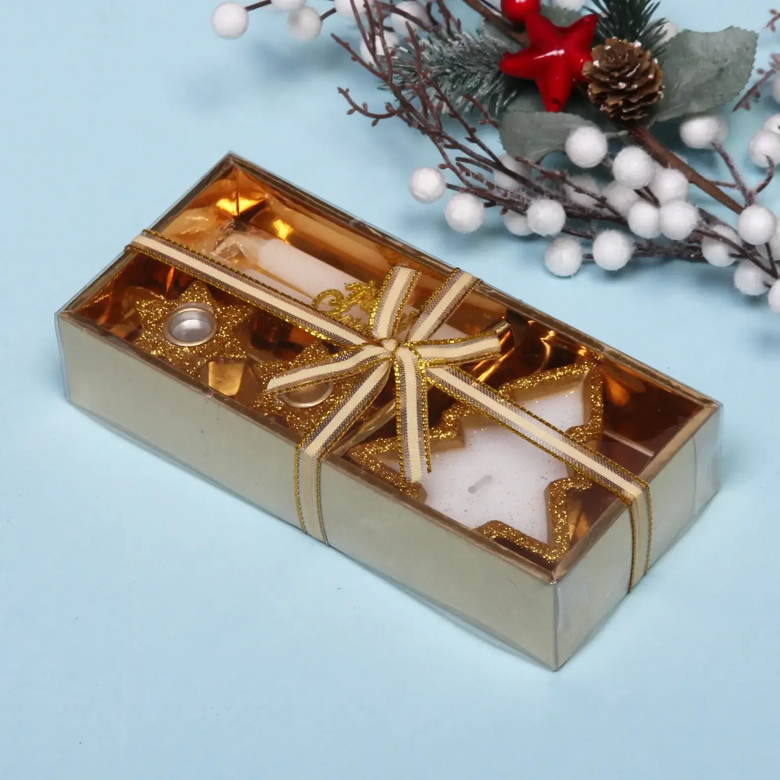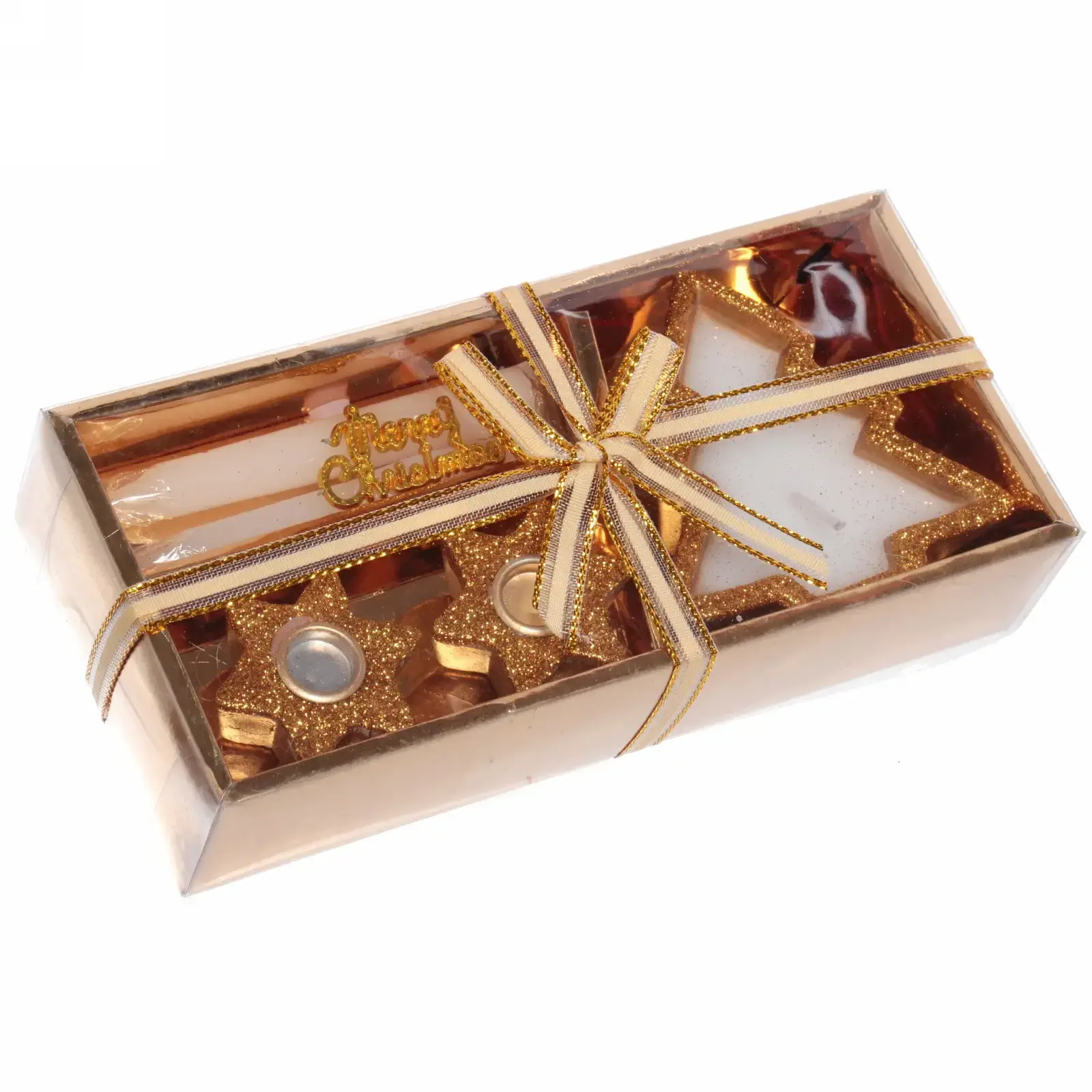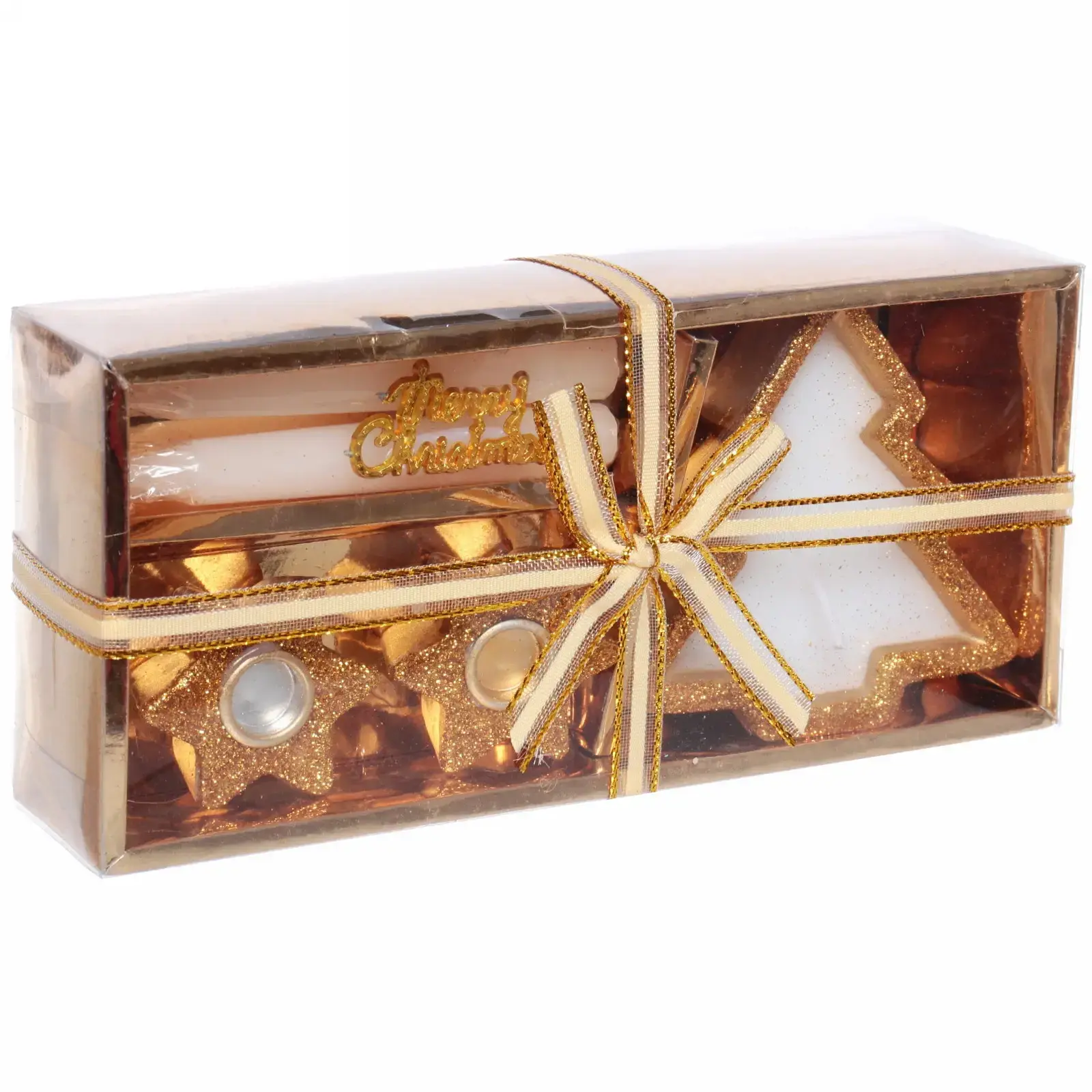 Набор новогодних свечей "Исполнение желаний", 3 шт, 18.5x8.5x4 см, золото/белый