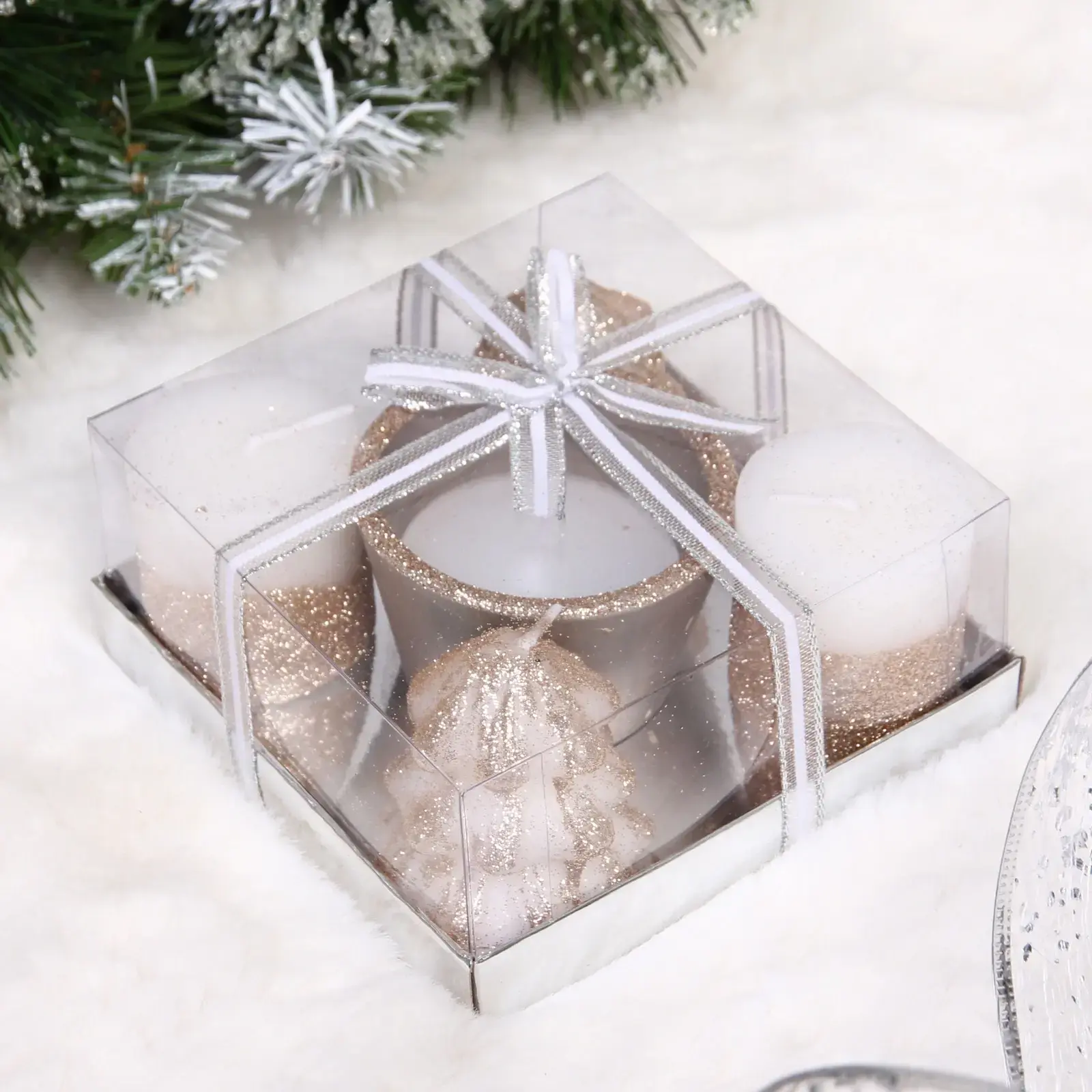 Превратите ваш дом в уютное новогоднее пространство с помощью этих декоративных свечей. Их нежный бело-золотой дизайн создает идеальное настроение для зимних вечеров.