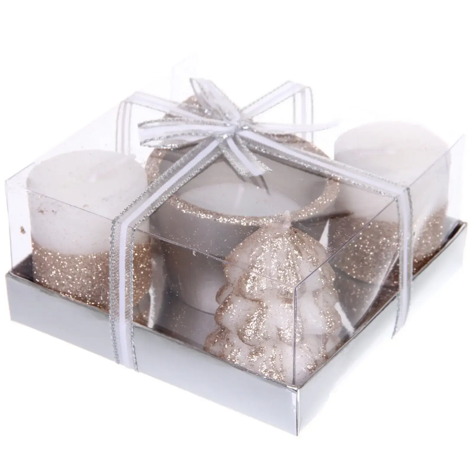Набор свечей новогодних "Лесной микс", 5 шт, 11.5х11.5х5см, белый/золотой