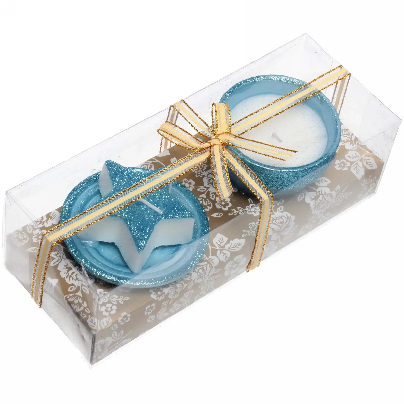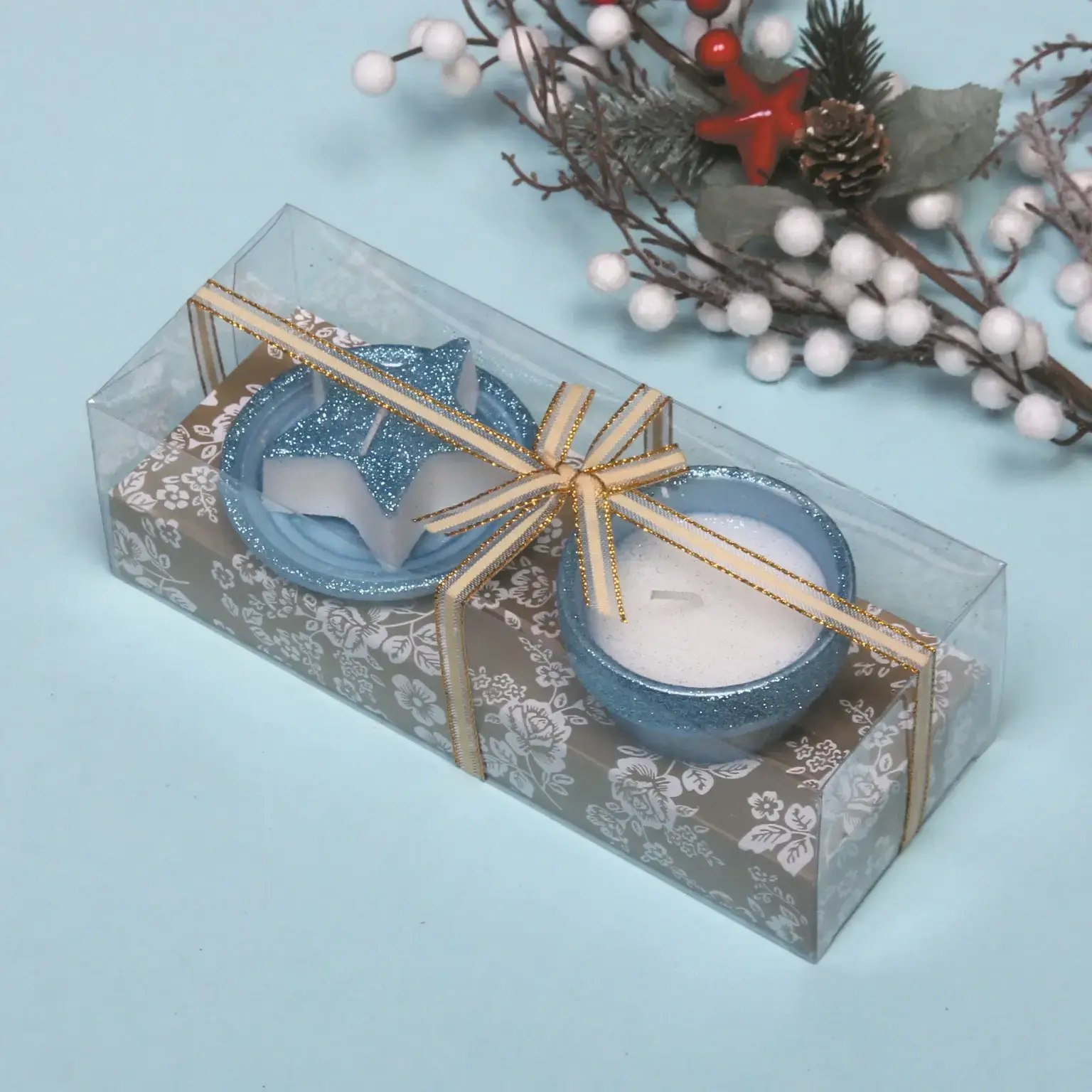 Внимание к деталям: каждая свеча аккуратно упакована в прозрачную коробку с декоративной лентой, что делает их готовым подарочным набором.