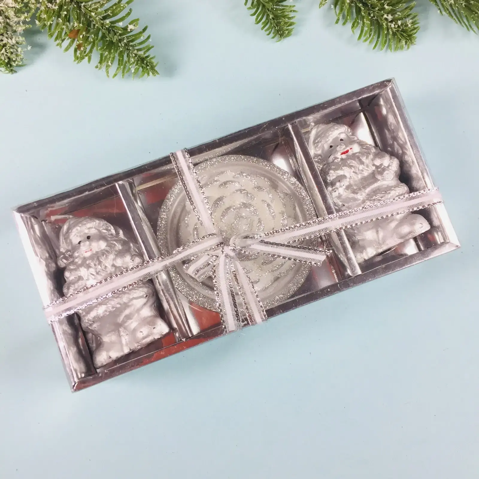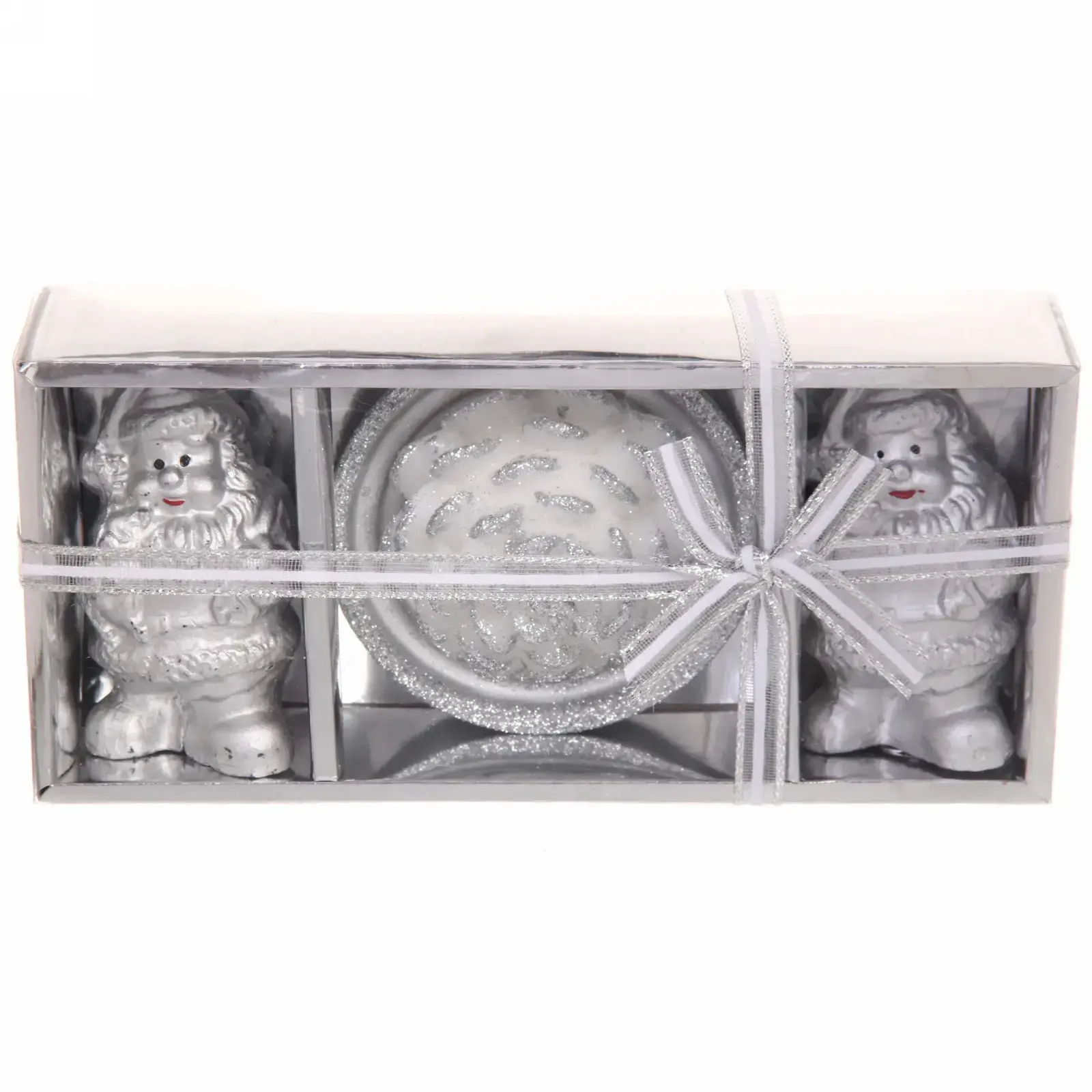 Свечи изготовлены из высококачественного парафина, что обеспечивает их долговечность и чистое горение. Размер каждой свечи составляет 18 см в высоту и 9 см в диаметре, что делает их универсальными для различных типов декора. Серебристый цвет добавляет нотку роскоши и делает их идеальными для новогодних праздников.
