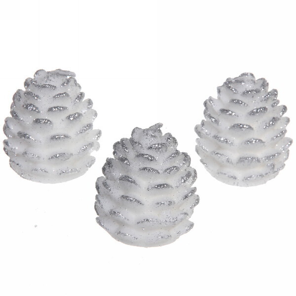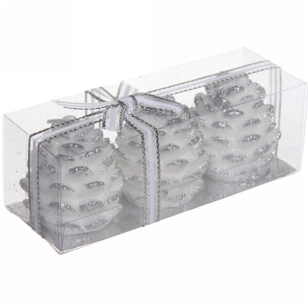 Эти стильные свечи в форме шишек добавят уют и праздничное настроение в ваш дом. Их белый цвет с блестящей серебристой отделкой прекрасно впишется в любой новогодний декор, создавая атмосферу тепла и уюта. Набор из трех свечей станет отличным дополнением к вашему праздничному столу или подарком для близких.