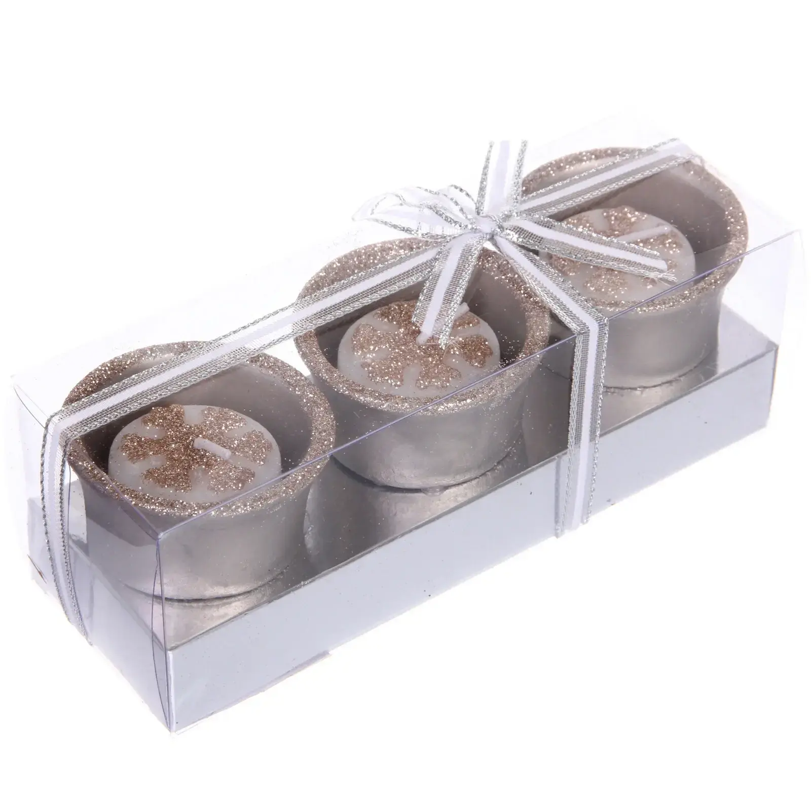 Набор свечей новогодних 'Снежинки' 3шт, 17*6*6см, серебристый/золотой