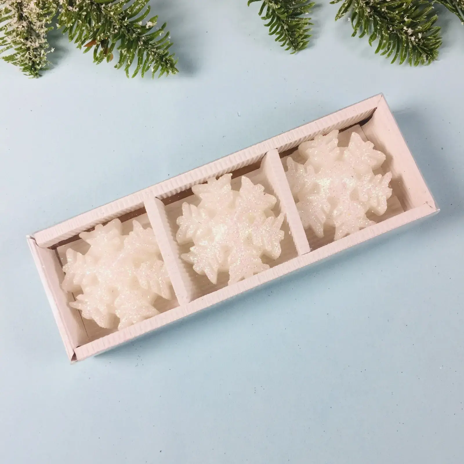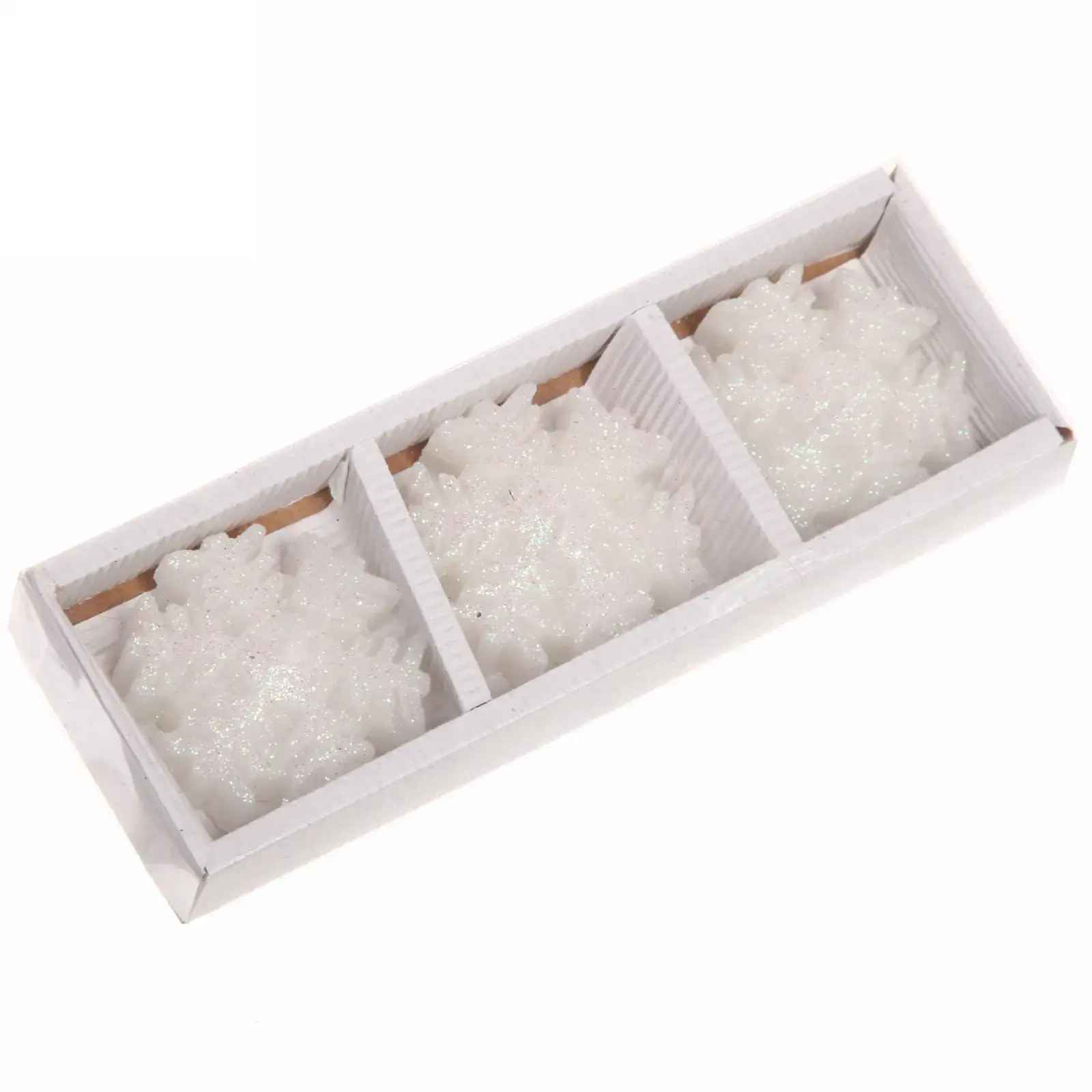 Каждая свеча имеет аккуратную форму снежинки, что делает их не только функциональными, но и стильными элементами декора. Упаковка выполнена из плотного картона и разделена на три секции, что предотвращает повреждение свечей. Эти свечи станут отличным дополнением к вашему новогоднему декору и создадут атмосферу уюта и тепла в вашем доме.