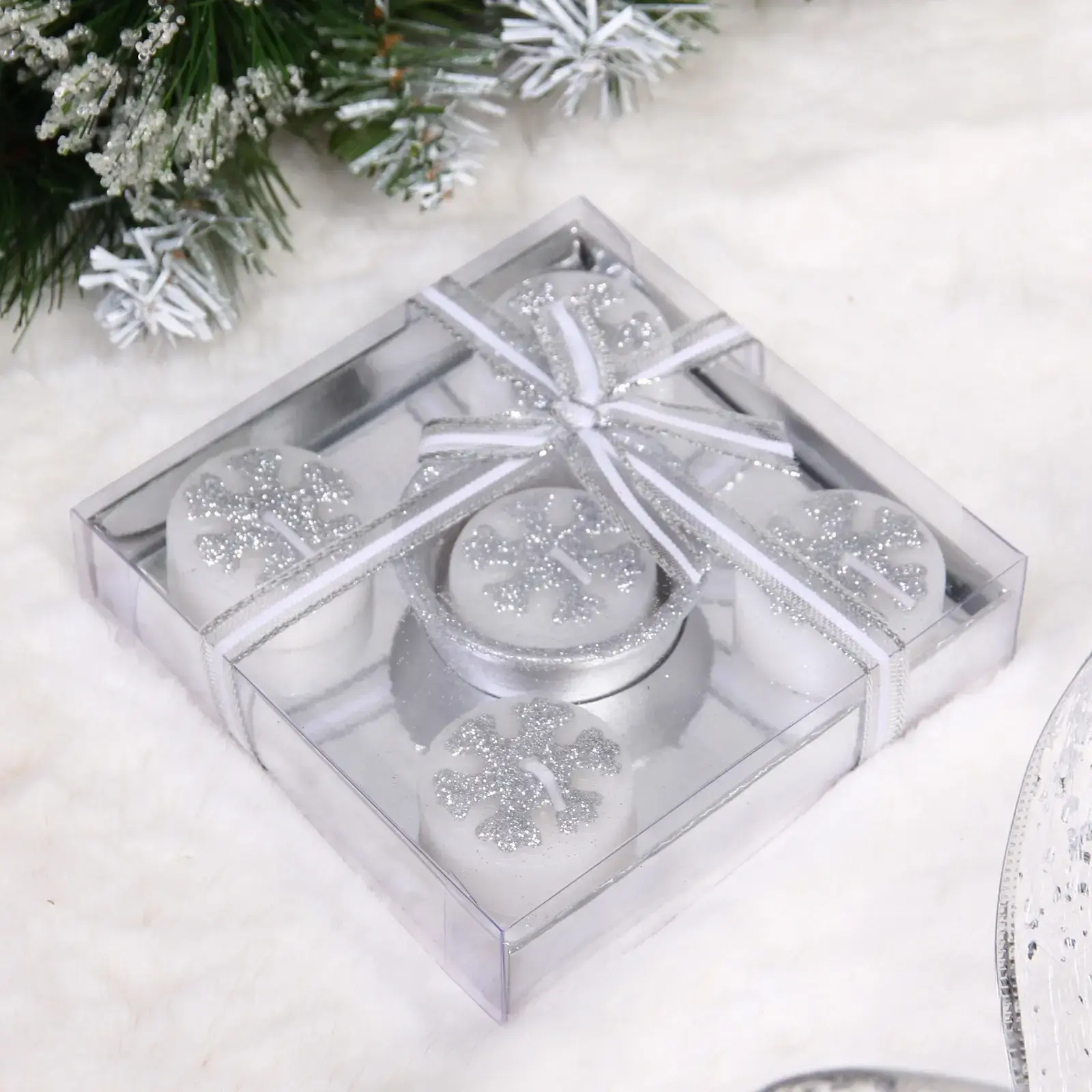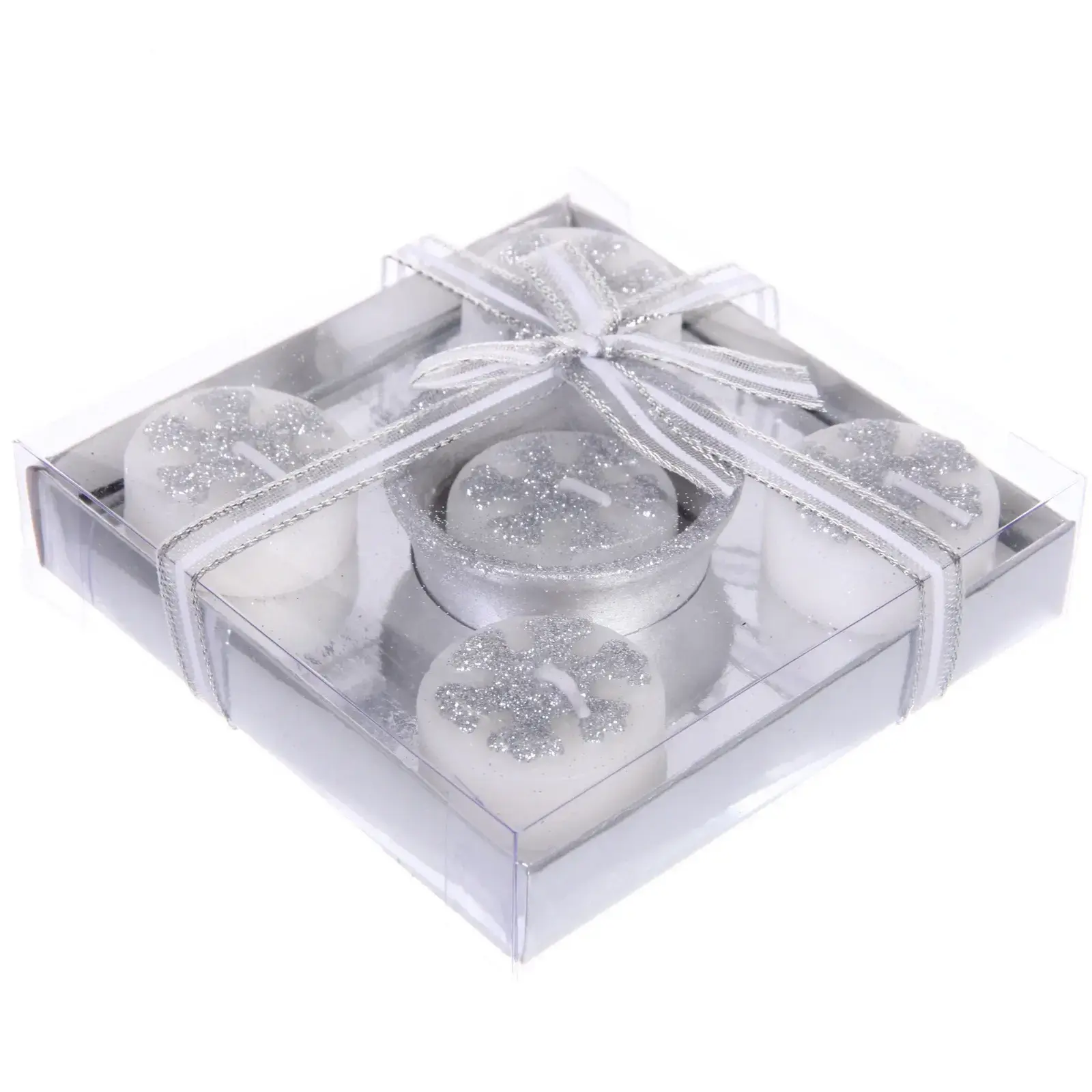 Свечи новогодние 'Снежинки', набор 5 шт, серебро, 11.5*11*5*3см
