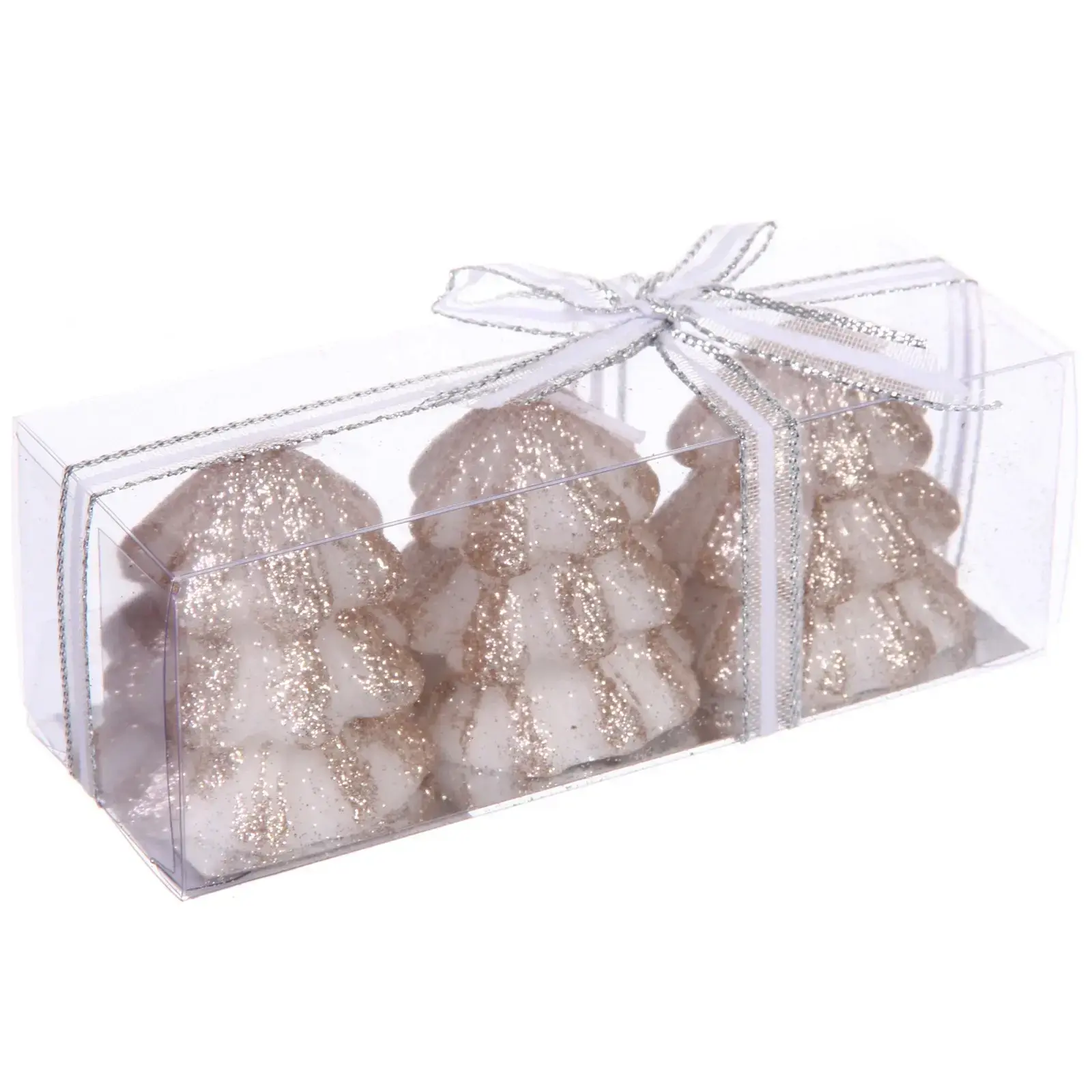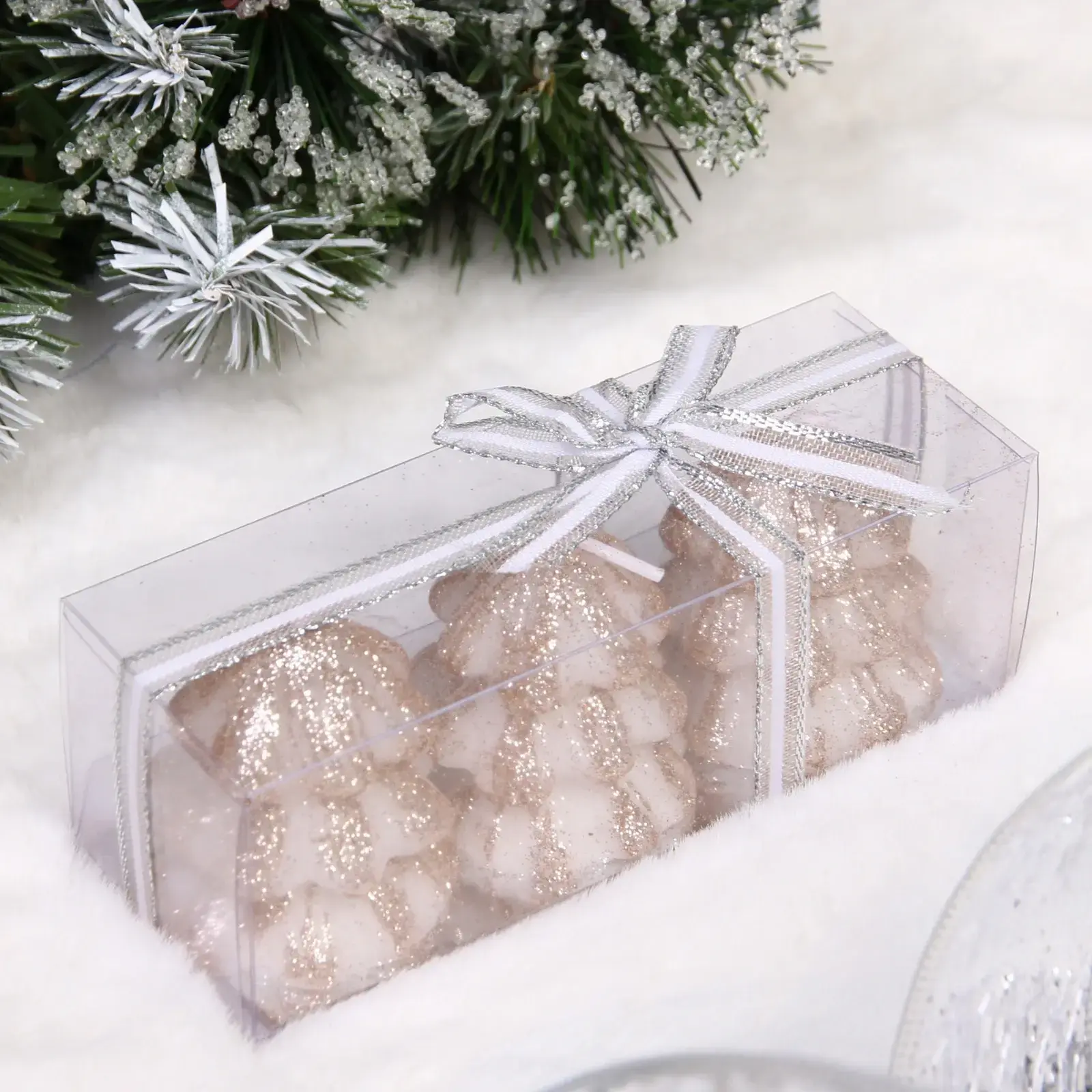 Эти свечи не только освещают ваш дом, но и добавляют волшебства в новогодние праздники. Их уникальный дизайн в форме ёлочек и нежный цвет шампань с золотистым блеском создают уютную и праздничную атмосферу. Подарите себе и своим близким незабываемые моменты, наполненные теплом и светом!