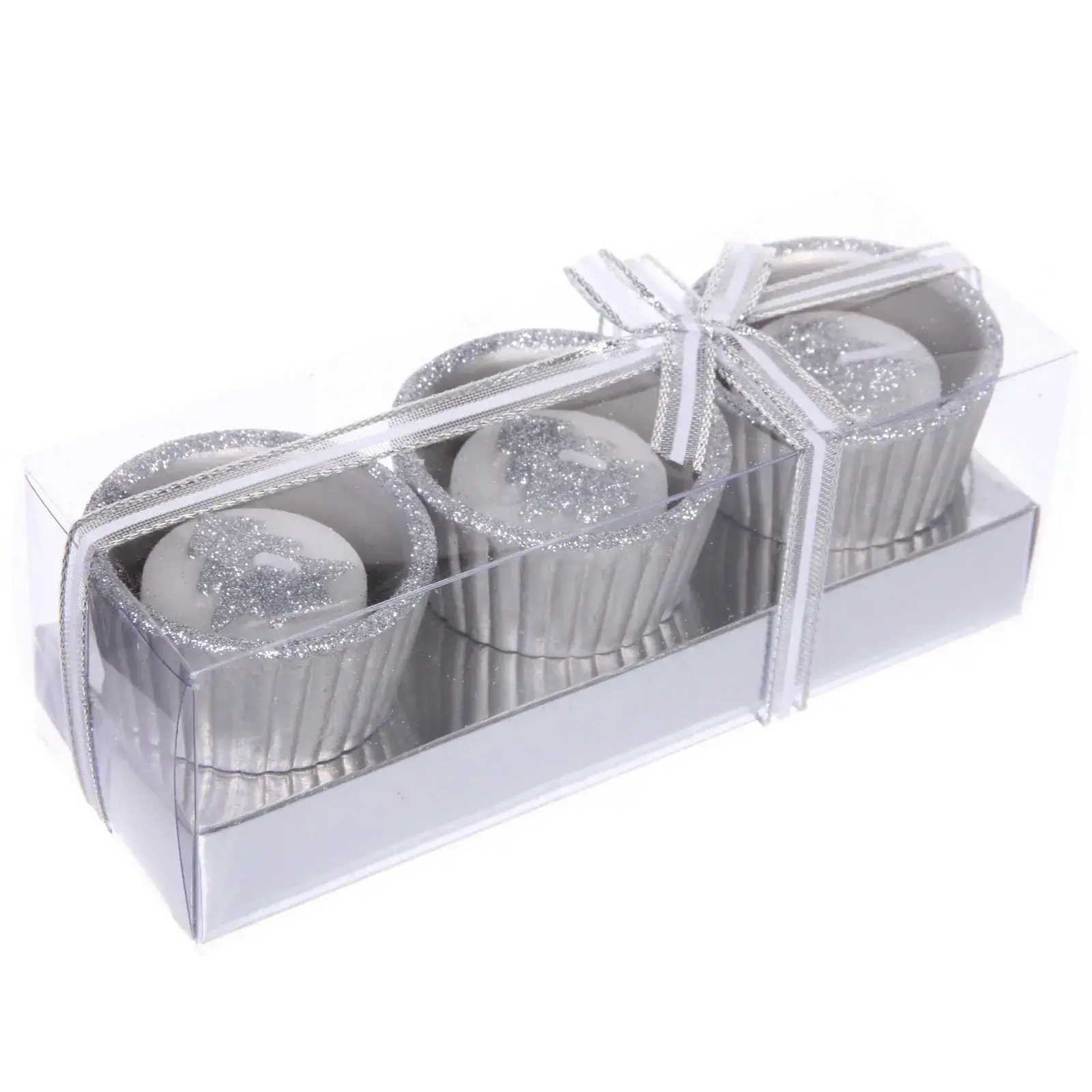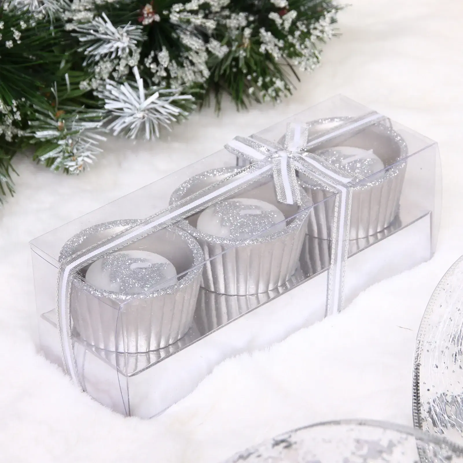 Свечи новогодние «Ёлочка в подсвечнике», набор 3шт, парафин, серебристый декор, 17×6×6см