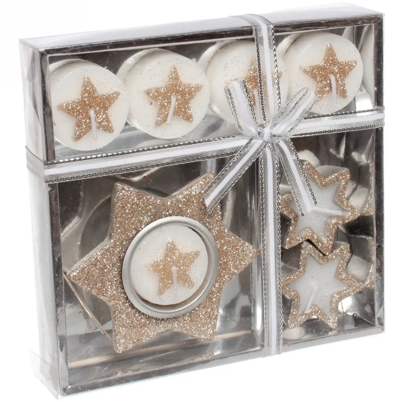 Свечи имеют размеры 16.5x15.5x3 см и выполнены в нежном цвете шампань, что делает их универсальными для любого стиля. Они упакованы в стильную коробку, что делает их отличным вариантом для подарка. Не упустите возможность сделать ваш Новый год особенным с этими замечательными свечами!